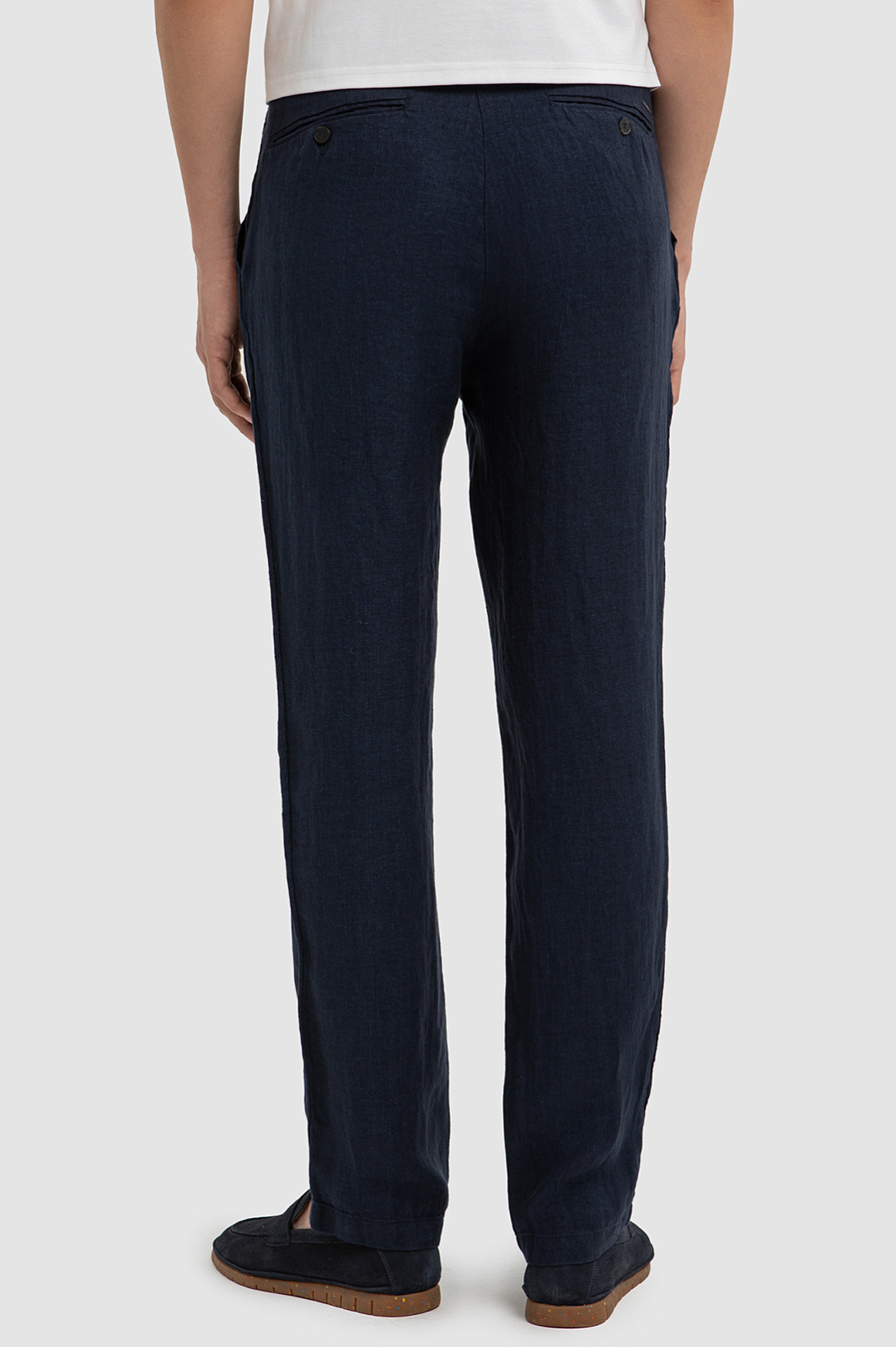 Темно–синие брюки KANZLER из чистого льна, созданы для ценителей «тихой роскоши», шероховатой натуральной фактуры, безупречного кроя и дорого материала. Окрашивание в готовом виде подчеркивает уникальность каждой пары. Сзади брюки украшает крошечный металлический шильдик. Для хранения мелочей имеются боковые и задние карманы. Лен обладает тактильно приятной, прохладной на ощупь текстурированной поверхностью. Натуральные волокна хорошо пропускают воздух и позволяют коже дышать. Внутренняя часть — подкладка из мягкого хлопка — служит комфорту и сохраняет оптимальную для тела температуру.