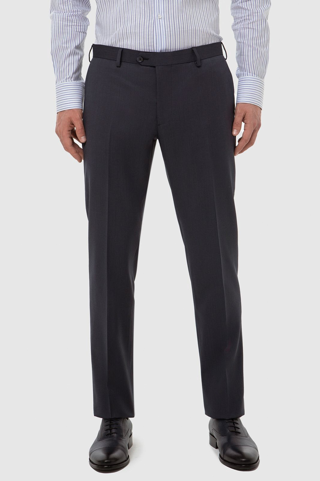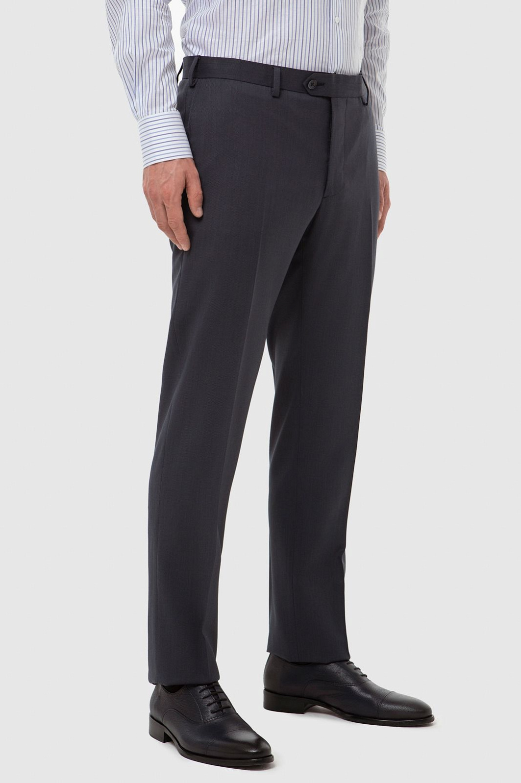 Дизайнеры KANZLER выполнили прямые брюки в оттенке графит из тонкой костюмной ткани. Мягкая премиальная шерсть Супер 120S приятна на ощупь и поддерживает оптимальную температуру, а благодаря специальной технологии материал устойчив к сминанию. Практичная модель со стрелками проста в уходе и будет уместна в длительных бизнес-поездках и путешествиях. Слегка зауженные брюки будут прекрасно смотреться с пиджаком и в строгом офисном, и в менее формальном повседневном образе с рубашкой. Изделие садится точно по фигуре и выглядит безупречно весь день.