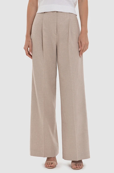 Брюки из хлопка и льна бежевого цвета, цвет бежевый, цена 5 995 руб. - купить в интернет-магазине KANZLER