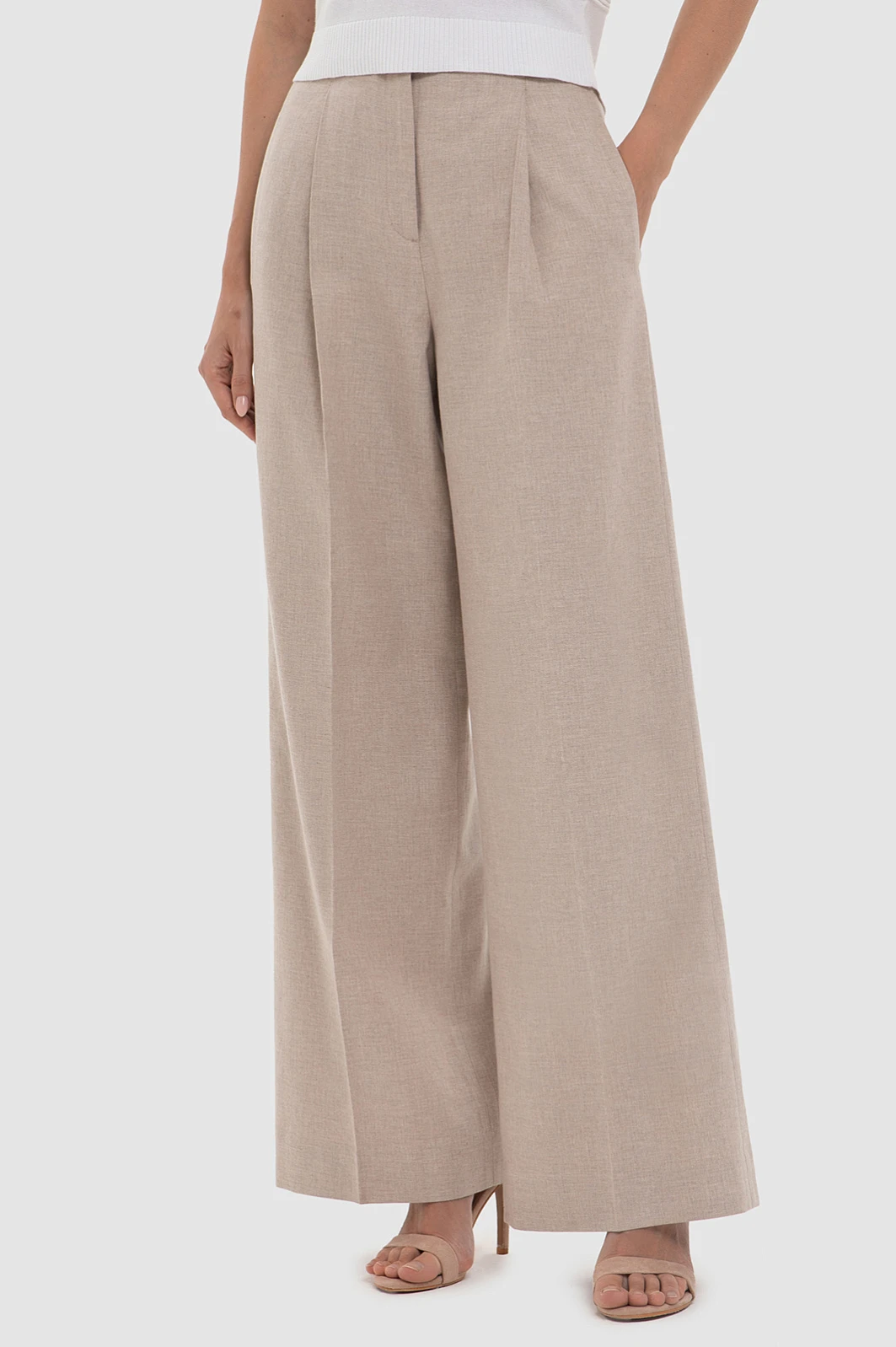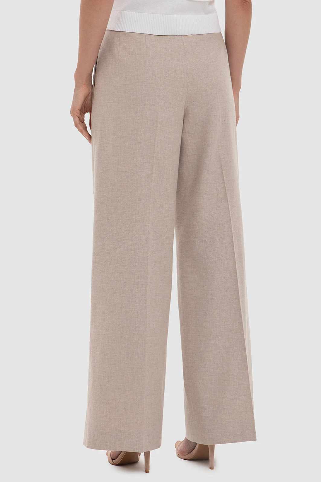 Брюки палаццо KANZLER из хлопка и льна — идеальный вариант для теплых дней, которые хочется провести не спеша, наслаждаясь каждым моментом. Широкие брюки с мягкими складками от пояса и боковыми карманами не отклоняются от канонического кроя. Прямые линии и стрелки удлиняют силуэт. Ткань бежевого оттенка с меланжевым эффектом, мягко облегающая фигуру, придает образу небрежный шик и подчеркивает женственные формы. Прикосновение натуральных волокон к коже подобно легкому бризу, который дарит свежесть и прохладу. В составе дорогой благородной ткани — хлопок и лен. Параметры модели: рост 180, 87-61-91 Размер на модели: S