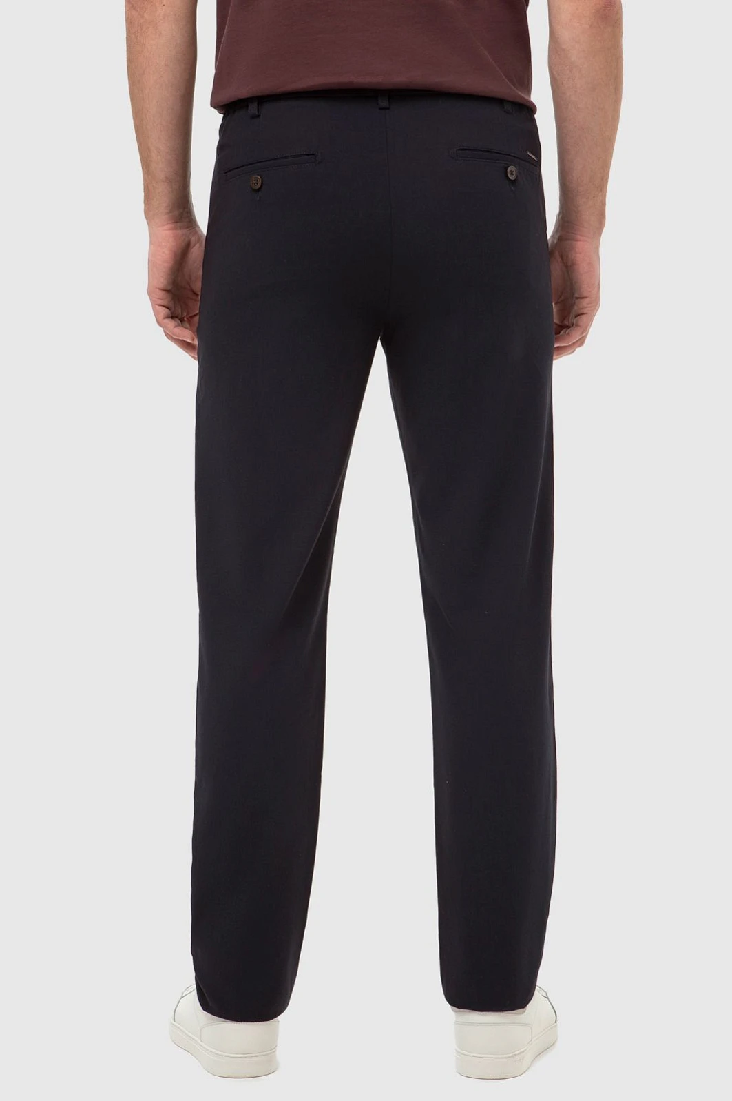 Прямые брюки KANZLER в благородном синем оттенке c четырьмя врезными карманами и отстроченными стрелками. Модель сшита из гладкой, мягкой вискозы с добавлением прочных синтетических волокон и шелковистого эластана, который обеспечивает повышенную растяжимость и идеальную посадку. Смесовый материал хорошо пропускает воздух, а четкие стрелки визуально вытягивают силуэт. Предлагаем сочетать однотонную модель с бежевым поло и белыми кедами. Трикотажные брюки идеально подойдут для нестрогого офиса, прогулок и путешествий. Советуем дополнить образ стильной футболкой-поло и кедами или рубашкой свободного кроя и лоферами из натуральной замши. Модель дополнена декоративным металлическим патчем на заднем кармане. Параметры модели: рост 189, 102-80-99 Размер на модели: 50
