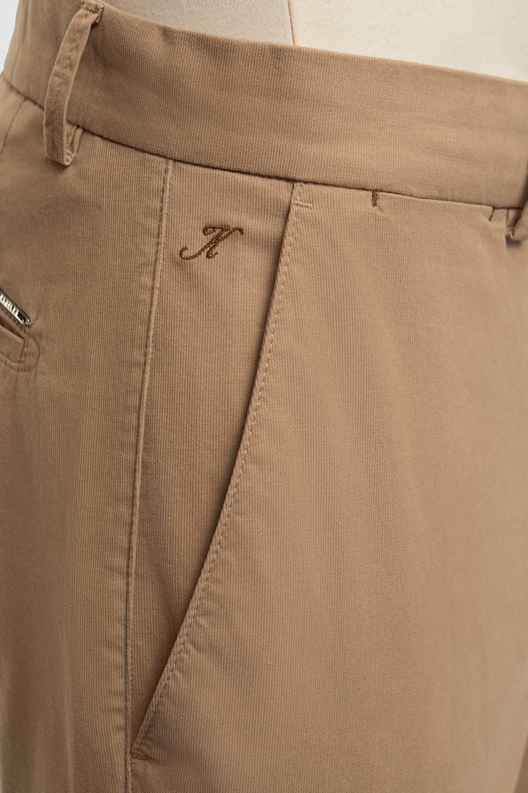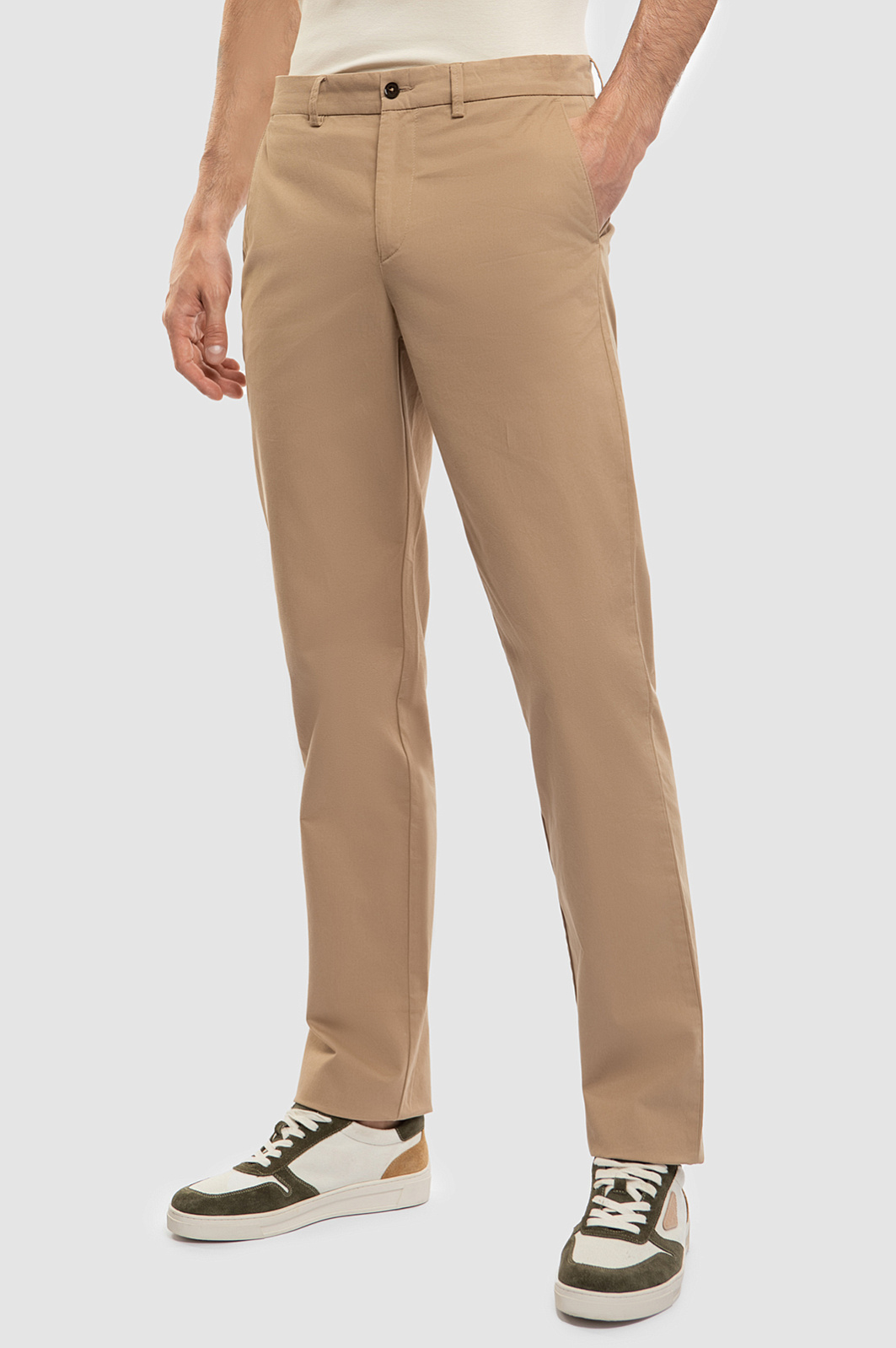 Элегантные брюки KANZLER теплого бежевого оттенка добавят образу мягкости и элегантности. Универсальная базовая модель прекрасно сочетается с футболкой, поло, рубашкой. Приталенный крой вытягивает силуэт вверх, делая его легким и динамичным. Небольшие акценты в виде вышитой фирменного инициала и металлического шильдика не нарушают общей лаконичности. Натуральная ткань со слегка шероховатой текстурой создана из гипоаллергенного воздухопроницаемого хлопка с небольшим добавлением эластана — для сохранения формы и хорошей посадки. Параметры модели: рост 192, 101-76-97 Размер на модели: 50