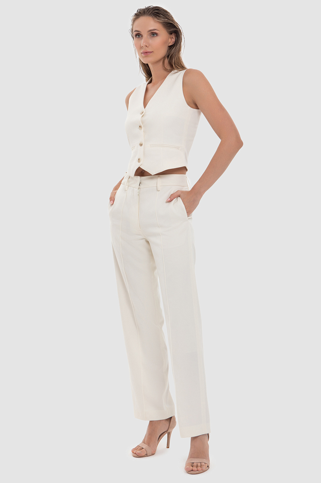 Брюки из смесовой шерсти, белый цвет, цвет светло-бежевый, цена 6 990 руб. - купить в интернет-магазине KANZLER