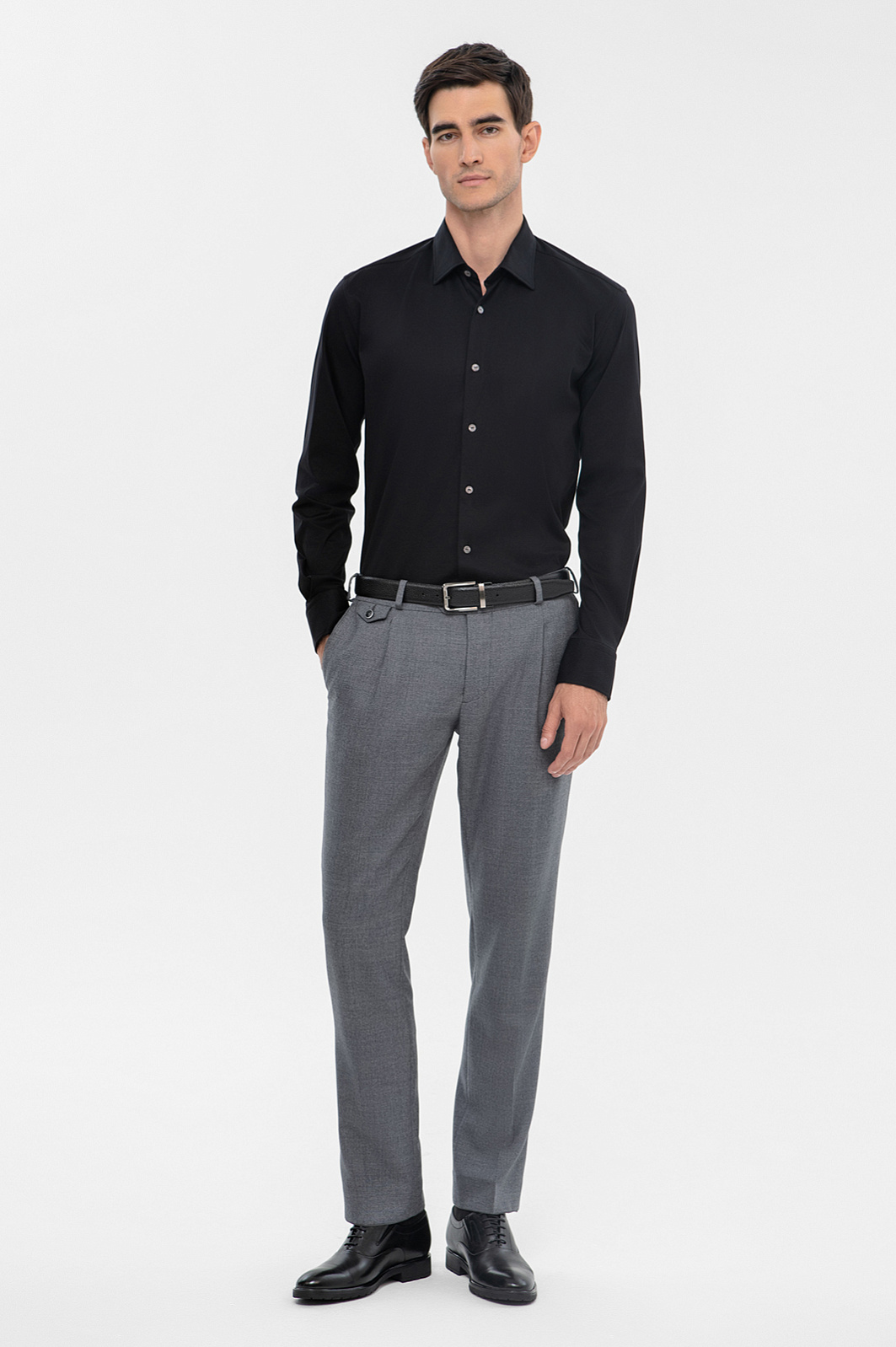 Элегантные брюки KANZLER в универсальном графитовом оттенке — базовая модель для делового образа. Защипы придают брюкам особый шарм и способны заметно преобразить фигуру, сделав ее стройнее. Брюки выполнены из премиальной тонкой шерсти Супер 120S, которая обеспечивает комфорт и долговечность изделия. Мягкая и приятная на ощупь ткань подарит вам ощущение уюта и тепла, а приталенный фасон гарантирует идеальную посадку по фигуре. Эти брюки станут отличным дополнением к любому гардеробу: носите их с рубашкой или джемпером, создавая элегантный и при этом комфортный образ. Дополните образ пиджаком и галстуком для делового комплекта в офис или поло и кроссовками для повседневного образа. Параметры модели: рост 192, 101-76-97 Размер на модели: 50