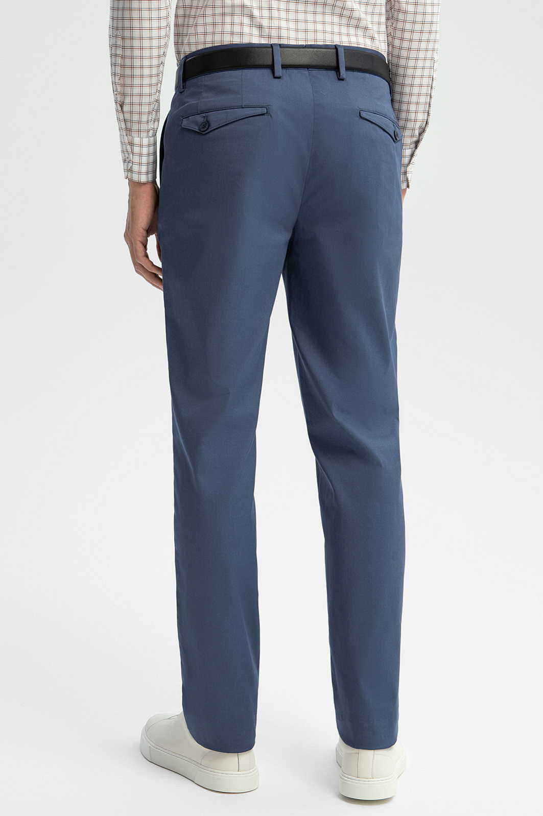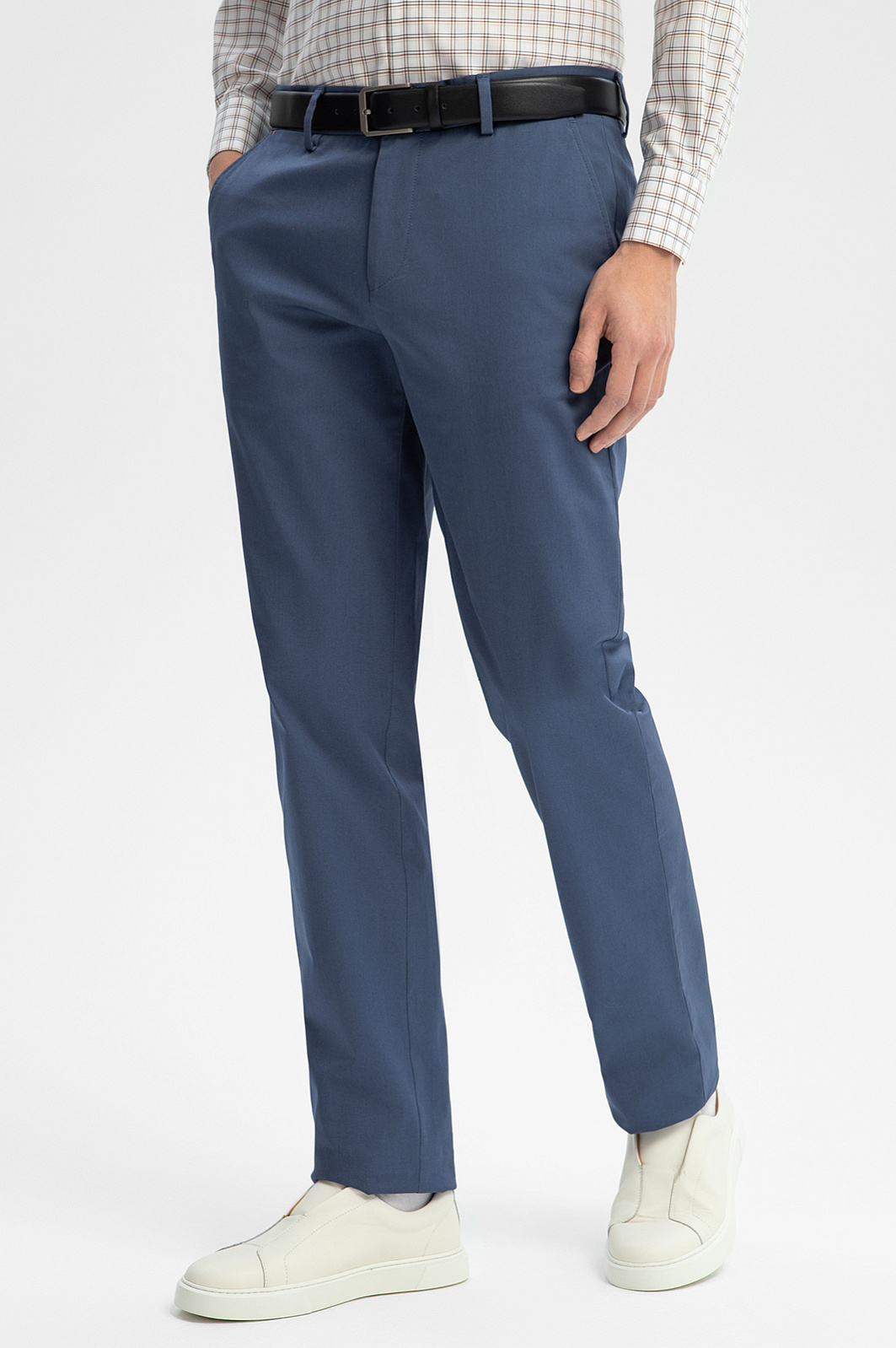Брюки KANZLER благородного серо-синего оттенка из мягкой хлопковой ткани — универсальный вариант, который подойдет для работы в офисе с нестрогим дресс-кодом, отдыха и путешествий. Свободный силуэт задан прямыми линиями, которые вытягивают фигуру вверх. Задние карманы брюк имеют небольшой клапан с пуговицей. Ткань сделана из мягкого гипоаллергенного хлопка, который не раздражает даже самую чувствительную кожу. Воздухопроницаемые волокна поддерживают оптимальную для тела температуру. Небольшая добавка эластана делает материал прочнее и помогает поддерживать форму. Параметры модели: рост 191, 97-77-99 Размер на модели: 50