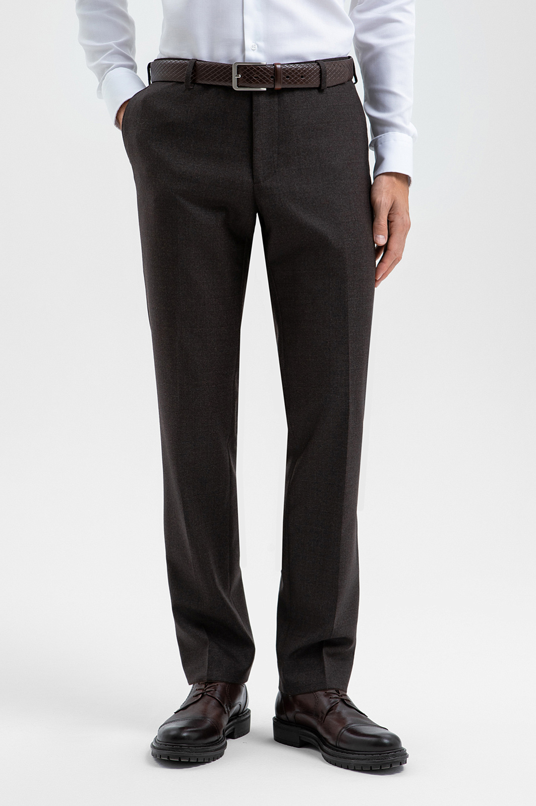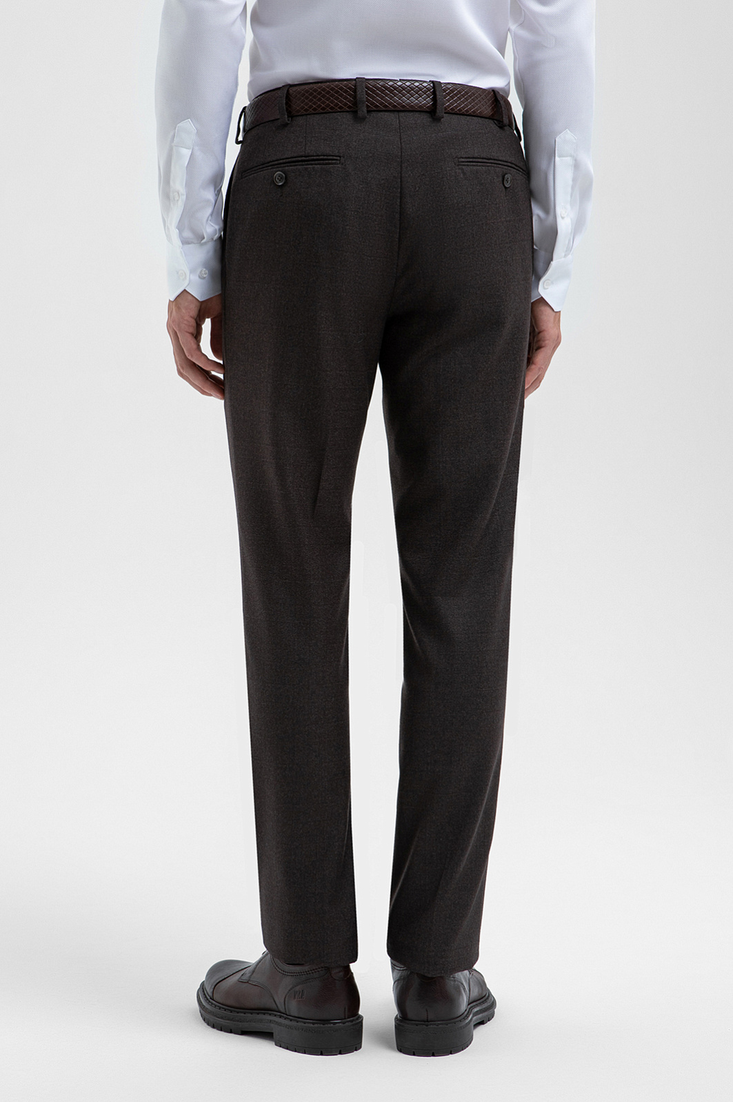 Брюки KANZLER оттенка горького шоколада из тонкой костюмной шерсти созданы для тех, кто ценит элегантность и современный комфорт. За первое отвечает изящный крой с аккуратными стрелками, которые задают вертикальные линии и облегчают силуэт. За второе — лёгкий немнущийся материал. Ткань из шерсти Супер 100S мягко ложится по ноге, сохраняя форму даже после долгого дня. Подкладка из гладкой прочной ткани обеспечивает движениям комфорт и непринуждённость. В официальной обстановке брюки можно носить с классическим однобортным пиджаком KANZLER из костюмной шерсти такого же оттенка. Параметры модели: рост 188, 97-82-92 Размер на модели: 50