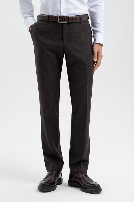 Брюки из шерсти, устойчивой к сминанию и загрязнениям, цвет коричневый, цена 14 990 руб., код 270358 - купить в Москве в интернет-магазине KANZLER