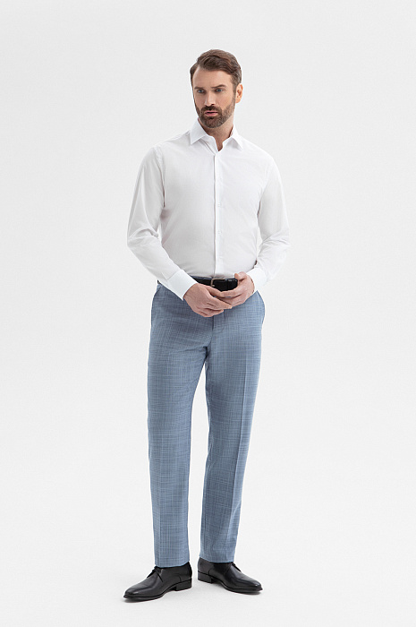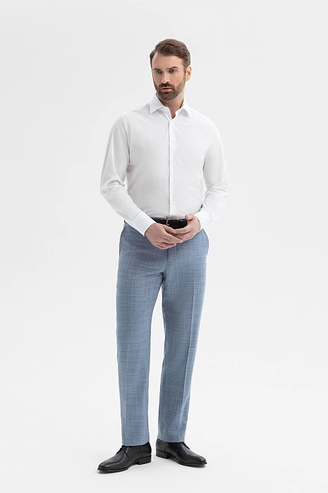 Брюки из шерсти и шелка, цвет голубой, цена 12 990 руб., код 271036 - купить в Москве в интернет-магазине KANZLER