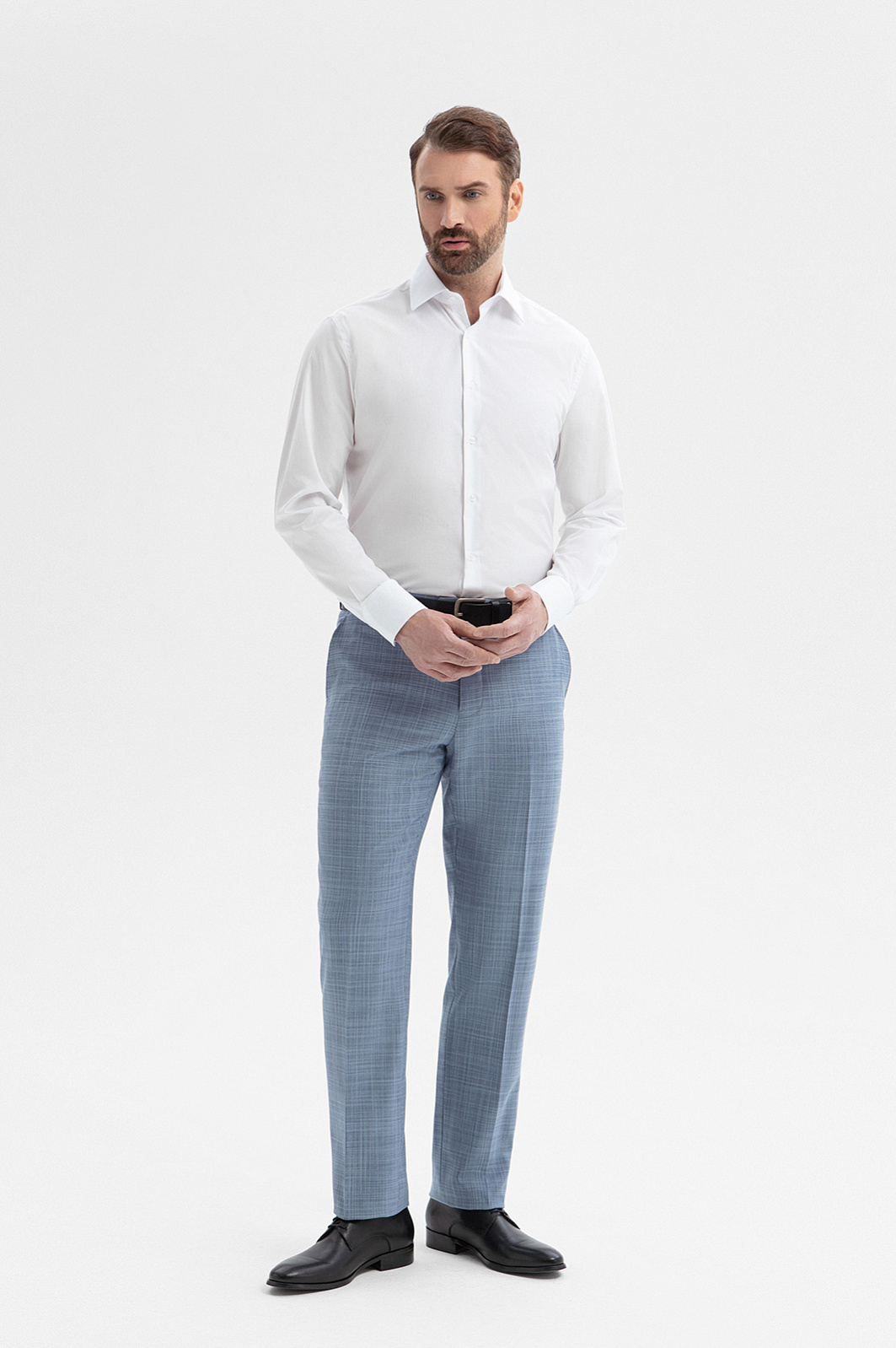 Голубые брюки KANZLER из шерсти и шёлка — универсальная модель, которая подходит как для деловых, так и для светских выходов. Зауженный крой задан строгими линиями, которые формируют лаконичный силуэт. Аккуратные стрелки визуально вытягивают фигуру и добавляют образу элегантность. Благородная ткань с деликатным меланжевым эффектом играет оттенками и выглядит многослойной. В составе — натуральные гипоаллергенные волокна, которые обеспечивают приятные тактильные ощущения, воздухопроницаемость и свежесть в течение дня. Устойчивая к сминанию шерсть поддерживает форму ткани, а нежный шёлк придаёт полотну сдержанный блеск и изысканность.