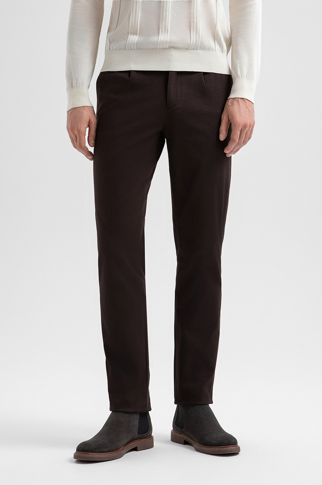 Повседневные брюки KANZLER из хлопка глубокого коричневого оттенка — идеальный вариант для города. В сочетании с рубашкой они выглядят формально, с мягким вязаным трикотажем — расслабленно и роскошно. Универсальный для любой комплекции прямой крой визуально вытягивает силуэт. Аккуратные боковые карманы не нарушают лаконичного дизайна. Тактильно приятная ткань создана из гипоаллергенного хлопка, который помогает поддерживать комфорт. Небольшая добавка лайкры делает материал пластичным, обеспечивает идеальную посадку и комфорт при движении.