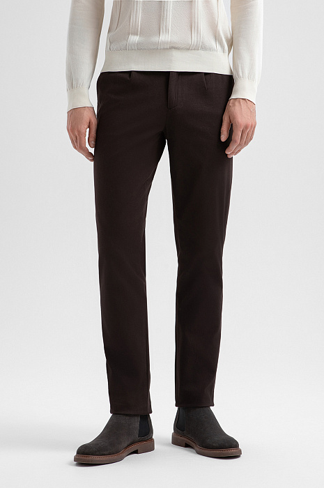Брюки из хлопка, цвет коричневый, цена 12 990 руб., код 271306 - купить в Москве в интернет-магазине KANZLER