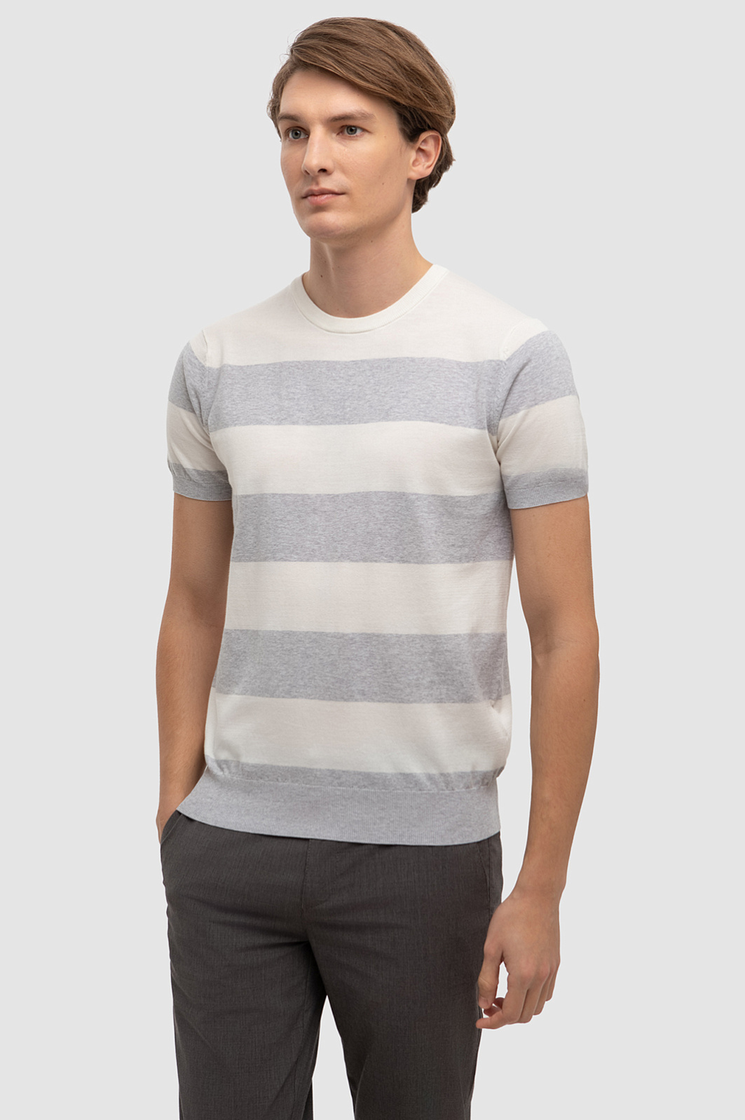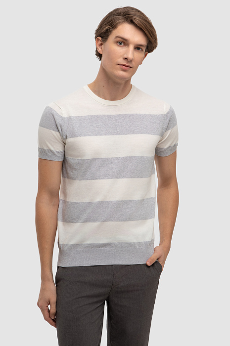 Джемпер с коротким рукавом из хлопка Пима, цвет серый, цена 3 990 руб., код 267246 - купить в Москве в интернет-магазине KANZLER