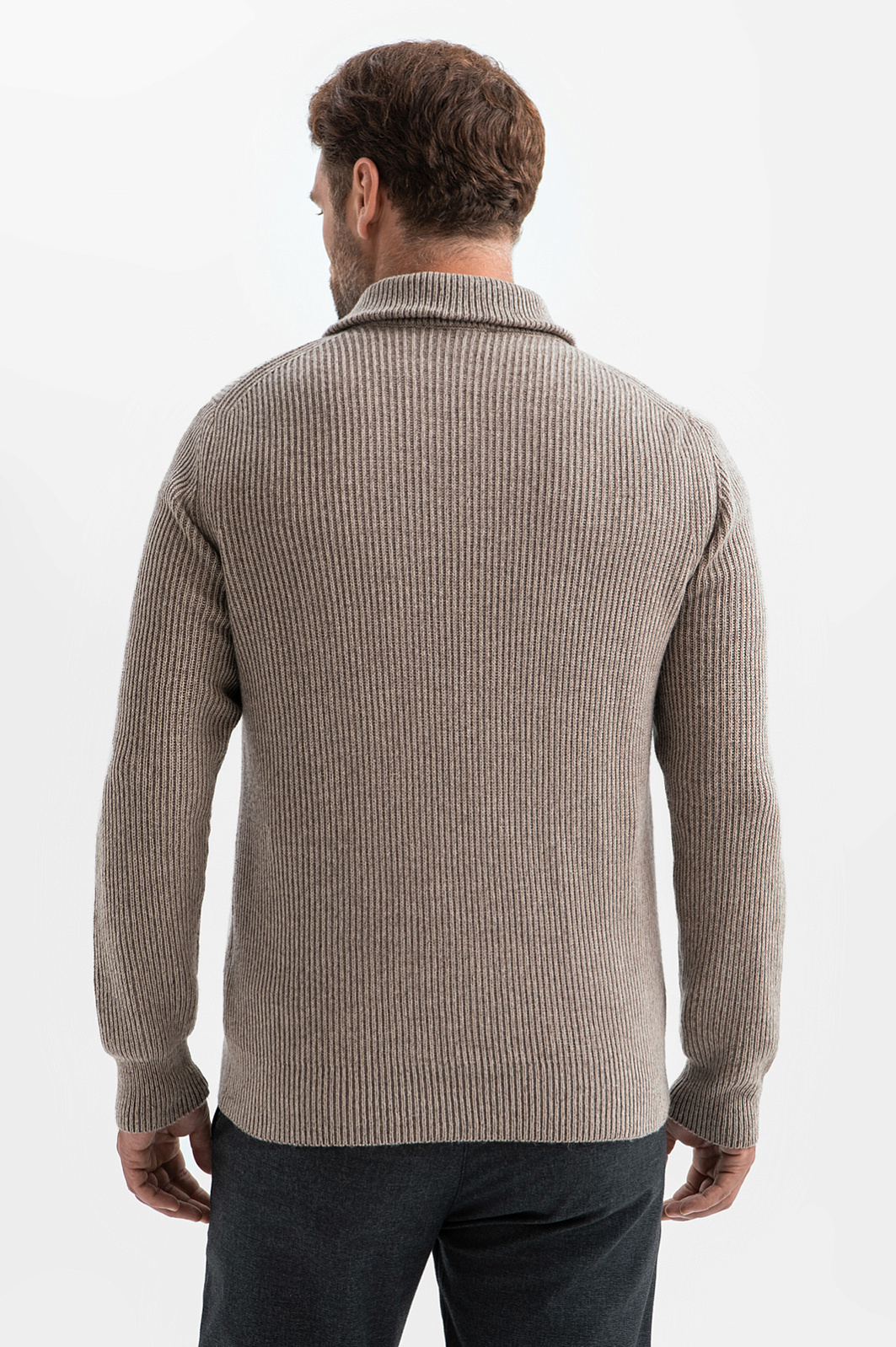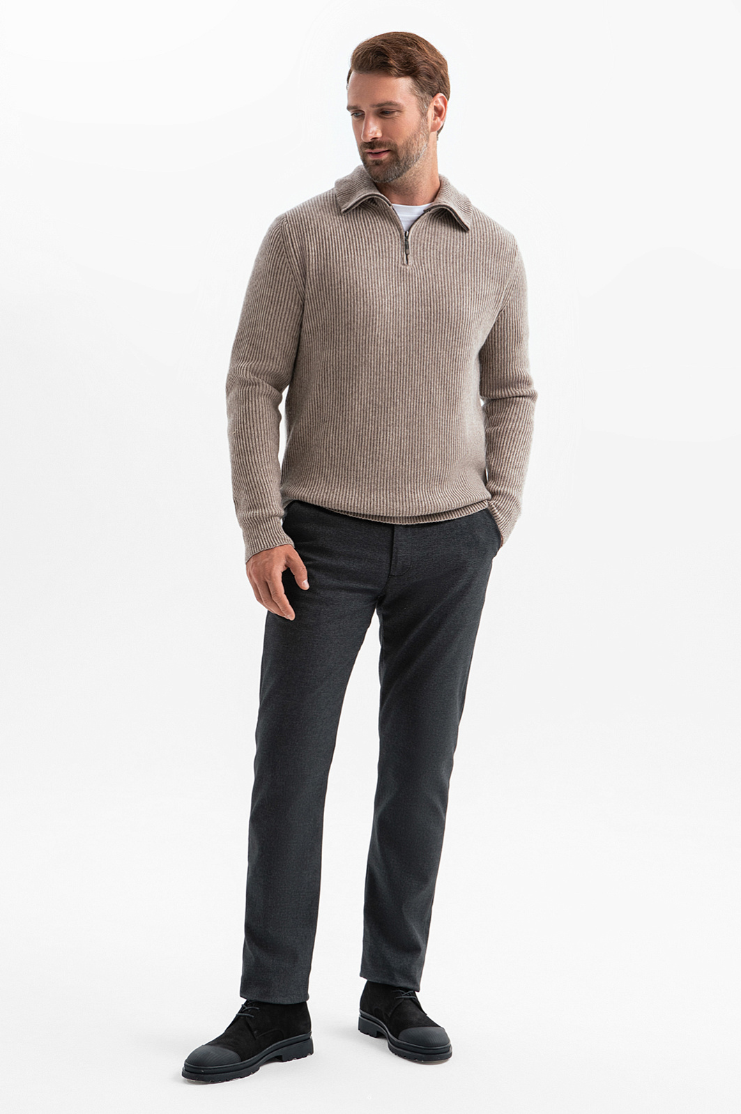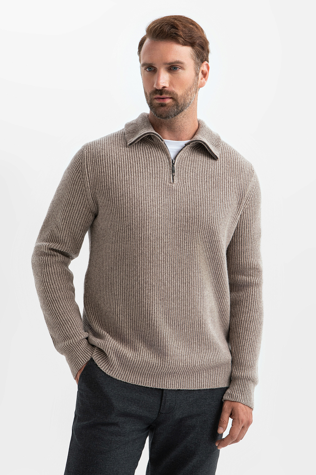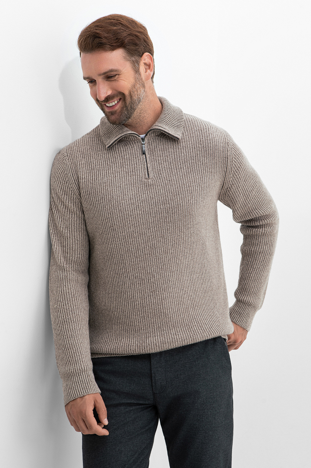 Джемпер KANZLER изысканного серо-бежевого оттенка подойдет для работы и отдыха. Чтобы от формального вида перейти к нарочитой небрежности, достаточно расстегнуть молнию на воротнике. Плотный материал в крупный рубчик мягко облегает тело. Широкие трикотажные резинки на рукавах и по нижнему краю обеспечивают аккуратную посадку. Качественная смесовая ткань состоит из натуральной шерсти (50%), которая хорошо сохраняет естественное тепло, дышащего и устойчивого к деформации лиоцелла и прочного полиамида. Параметры модели: рост 189, 102-80-99 Размер на модели: M