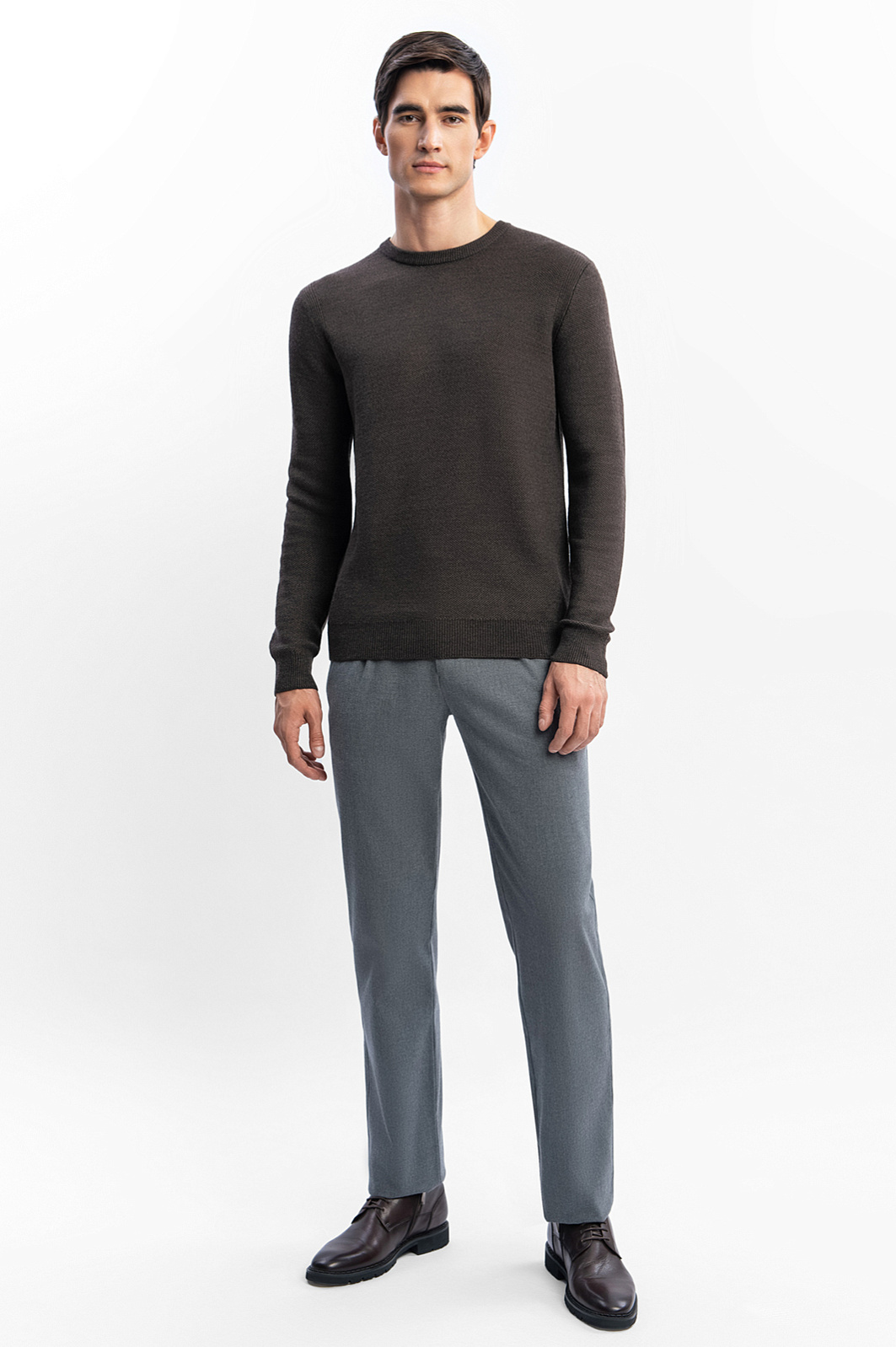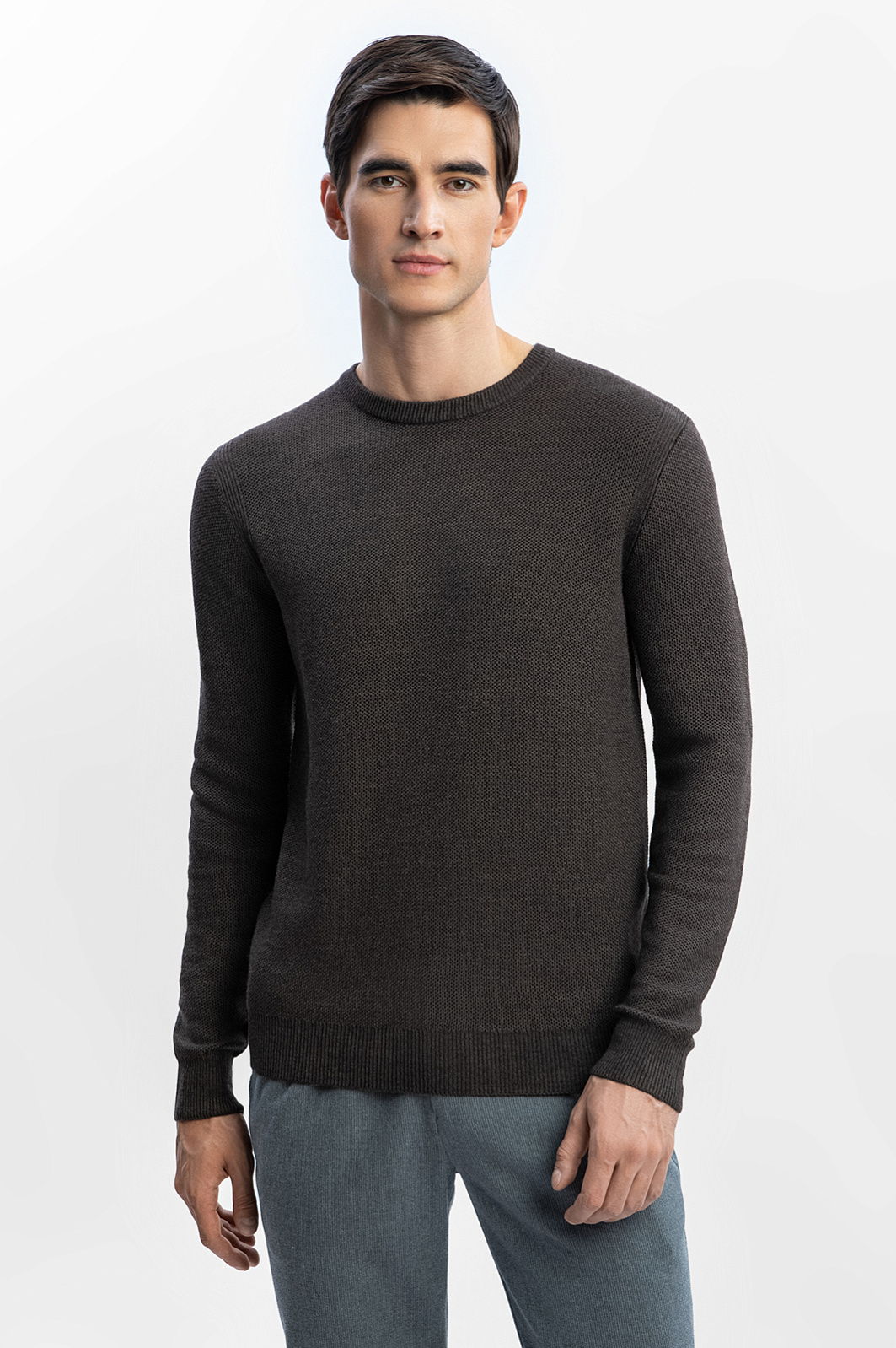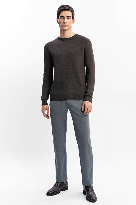 Джемпер KANZLER коричневого оттенка из смесовой шерсти с круглым вырезом всегда выручит, даже если на сборы остается пять минут. Это универсальная модель в урбанистическом стиле, базовая вещь для создания стильных повседневных аутфитов для офиса, прогулок и путешествий. Джемпер подойдет для любой комплекции. Приятная фактурная ткань следует линиям тела, подчеркивая достоинства фигуры. Теплый дышащий трикотаж сделан из натуральной шерсти и акрила — суперпрочных волокон, которые поддерживают форму и придают материалу износоустойчивость. Параметры модели: рост 192, 101-76-97 Размер на модели: M