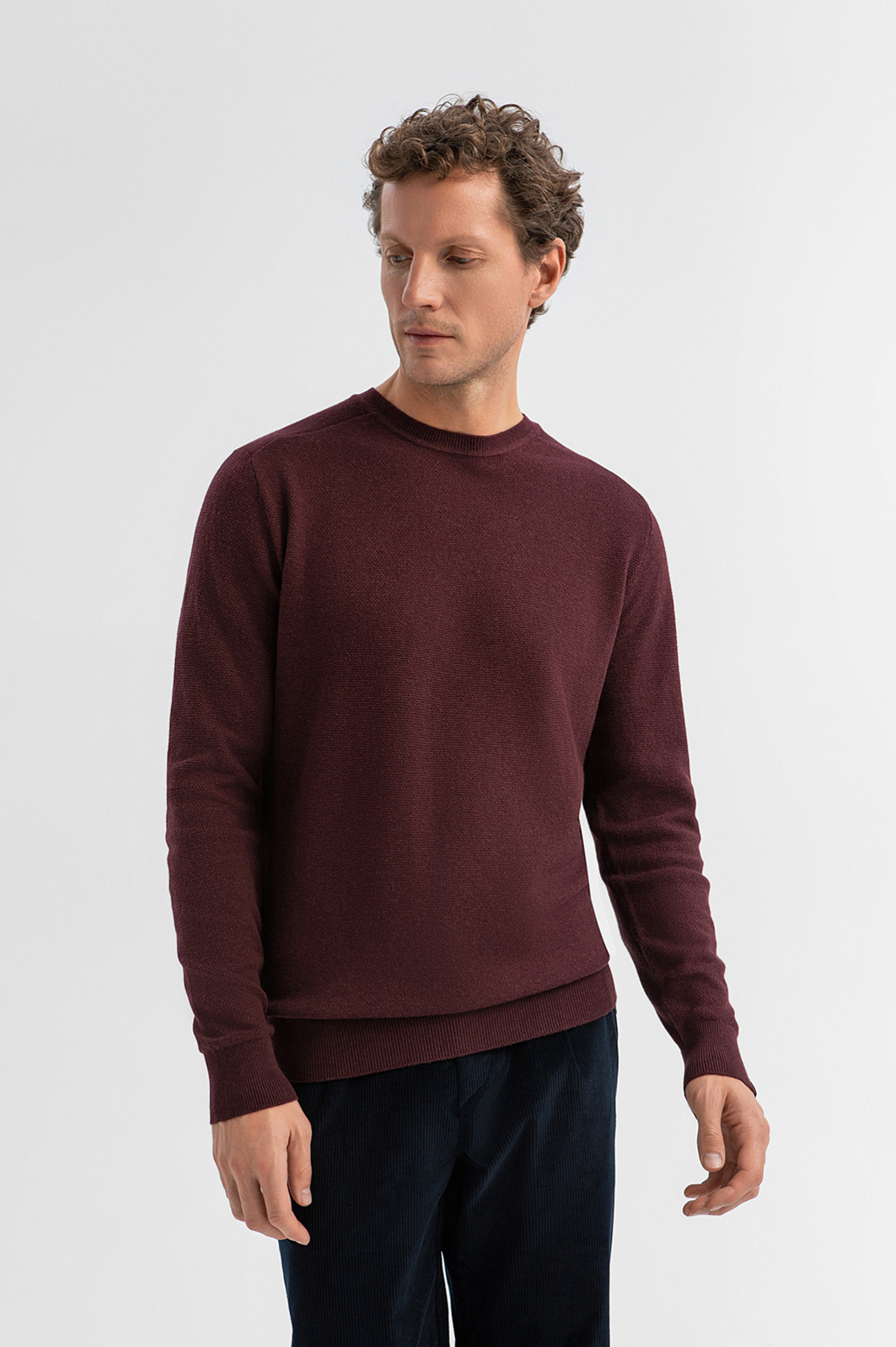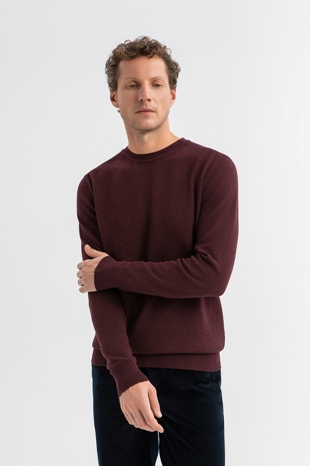 Джемпер KANZLER бордового цвета из хлопка и кашемира — это сдержанная элегантность с уютным характером. Удобная базовая вещь впишется в повседневный гардероб и пригодится, чтобы отправиться в офис и прогулку по городу. Чистый силуэт без лишних деталей подчеркивает универсальность модели, а слегка фактурный трикотаж придает ей глубину. Широкие трикотажные резинки на манжетах и по низу обеспечивают аккуратную посадку. Натуральная ткань сделана из легкого гипоаллергенного хлопка (95%) и нежного кашемира (5%). Такой состав обеспечивает мягкость, циркуляцию воздуха и комфорт в течение всего дня. Параметры модели: рост 188, 97-82-92 Размер на модели: M