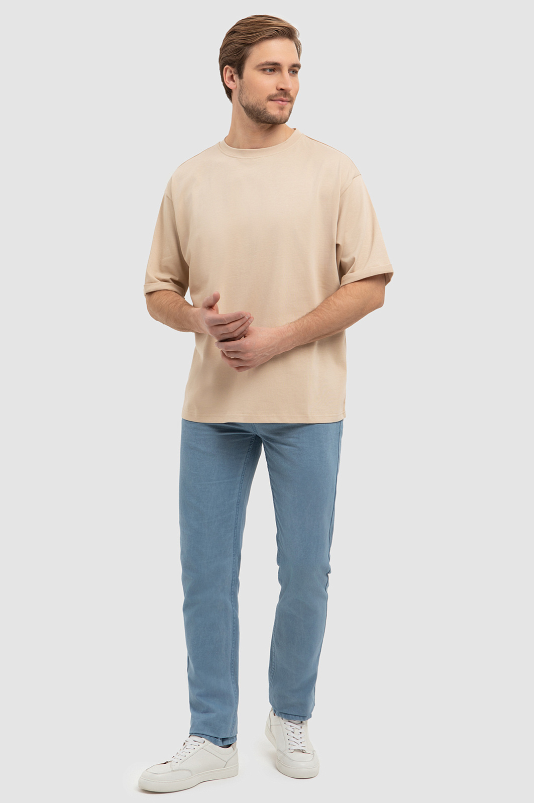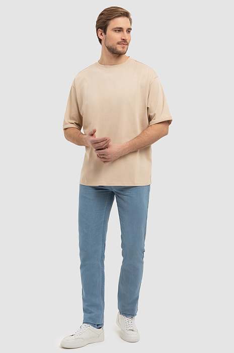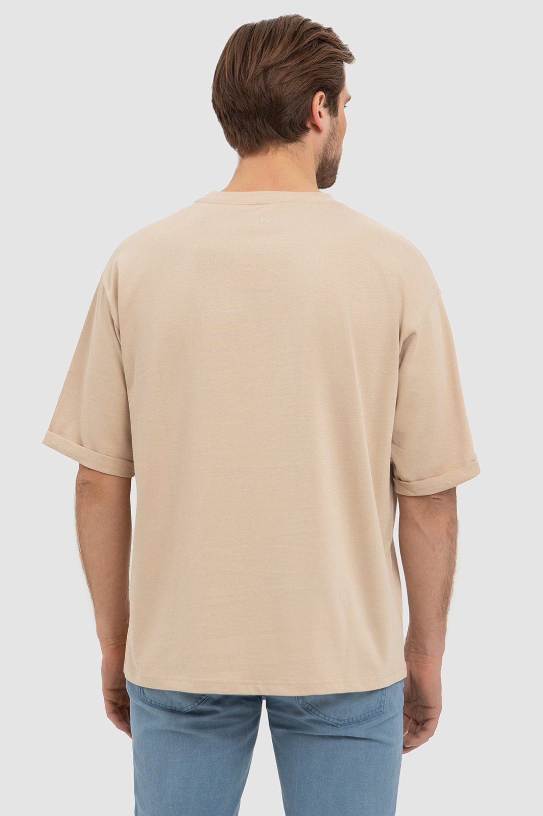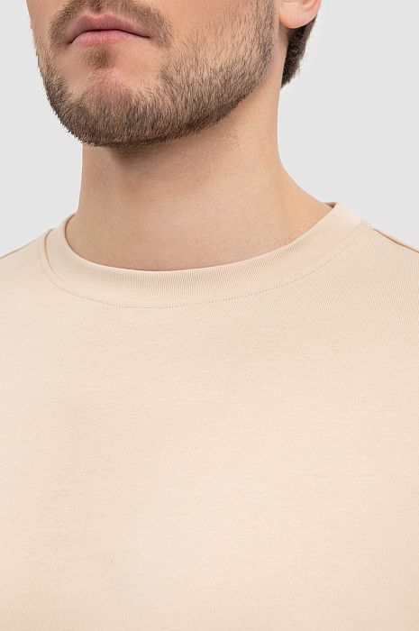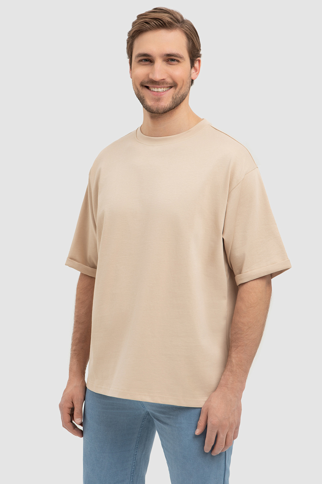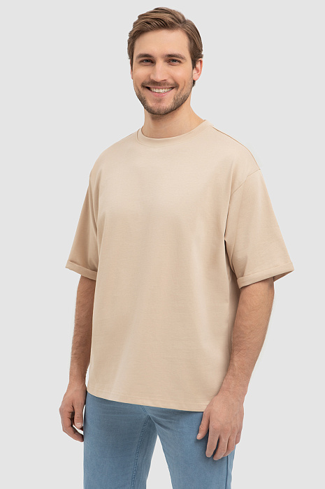 Хлопковая футболка оверсайз, цвет бежевый, цена 3 990 руб., код 267392 - купить в Москве в интернет-магазине KANZLER