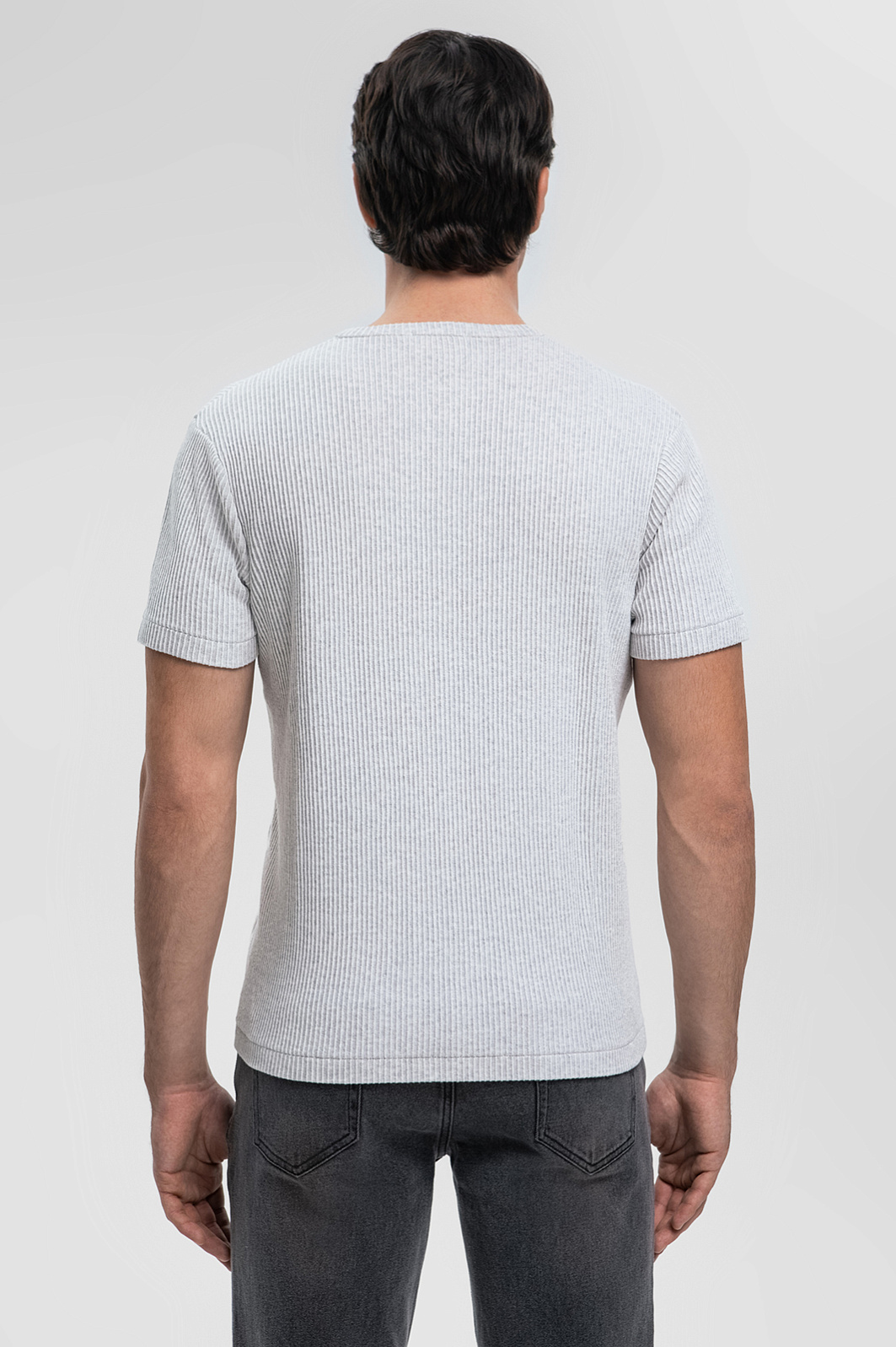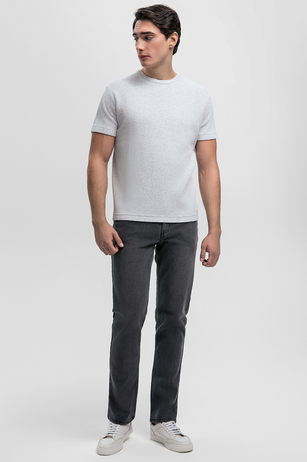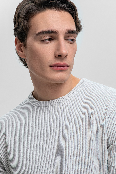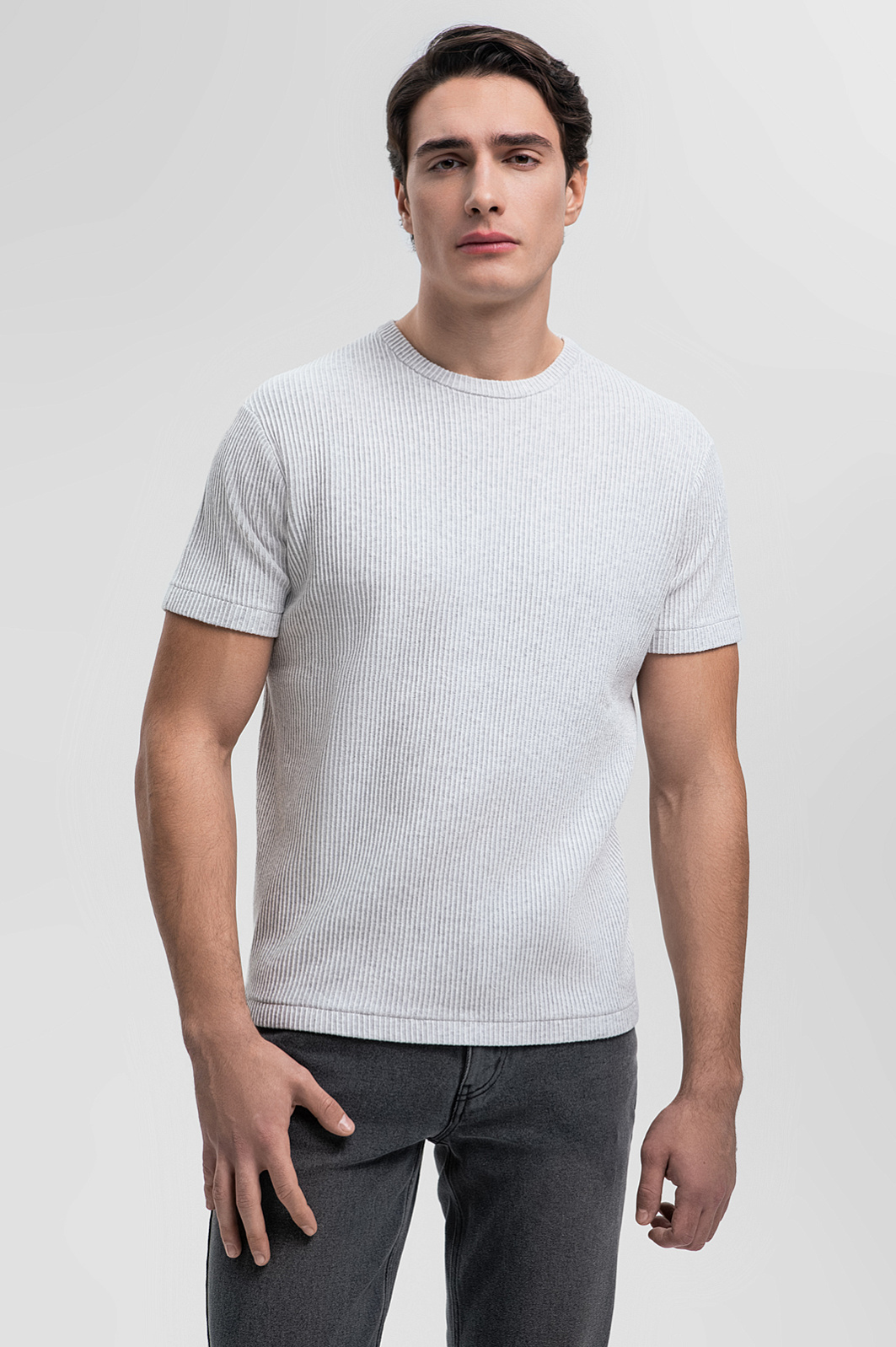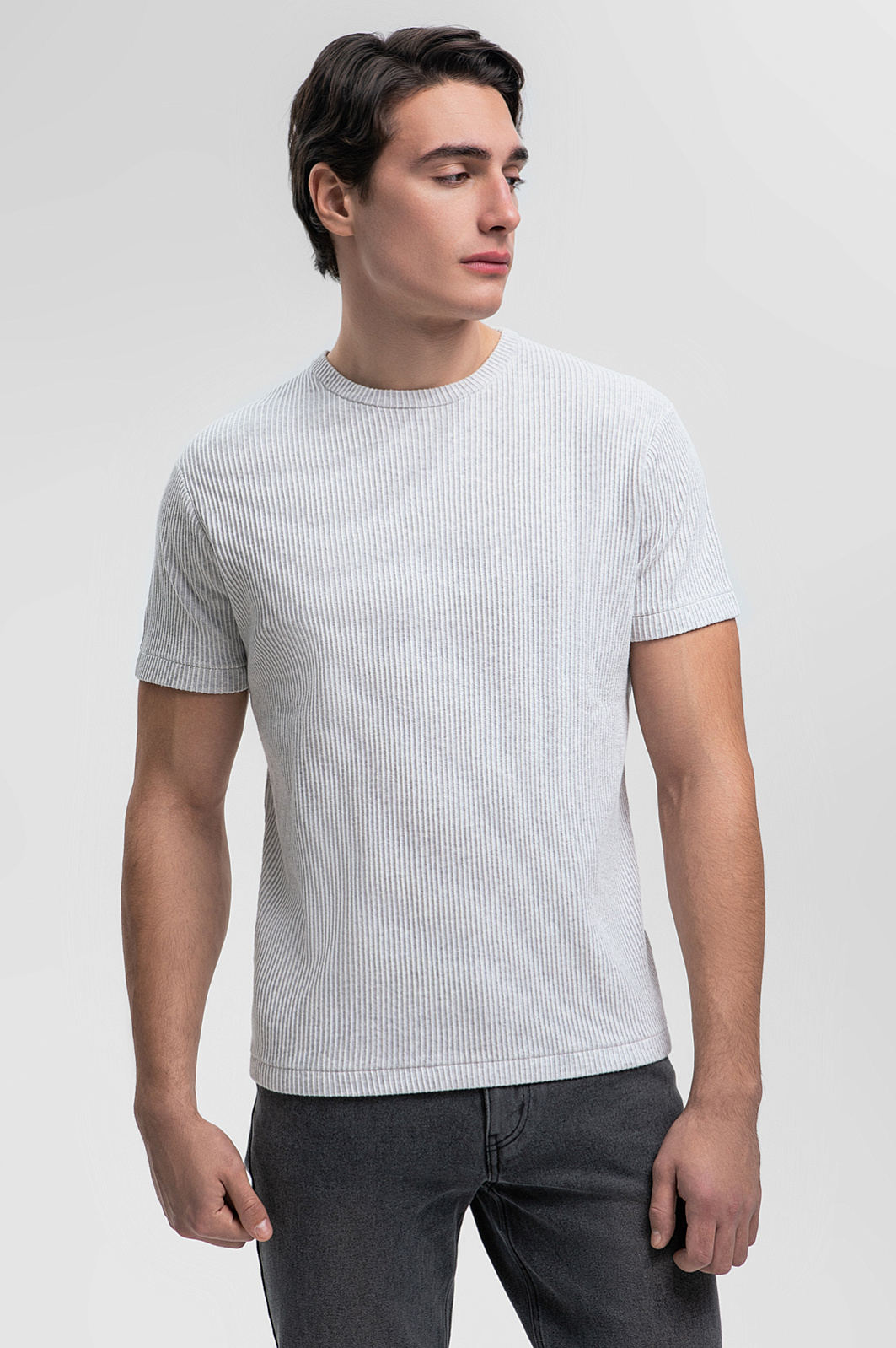 Футболка из хлопка в рубчик, цвет серый, цена 4 990 руб., код 269168 - купить в Москве в интернет-магазине KANZLER