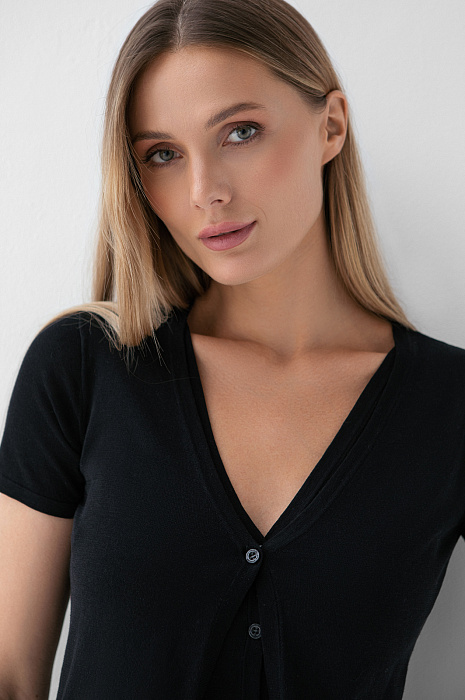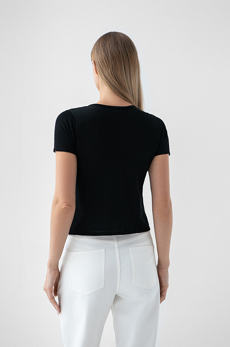 Футболка из хлопка, шелка и льна, цвет черный, цена 8 990 руб. - купить в интернет-магазине KANZLER