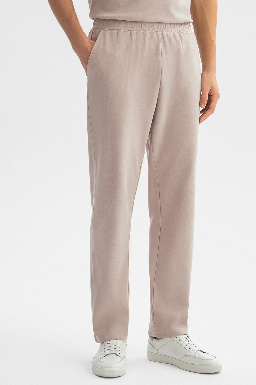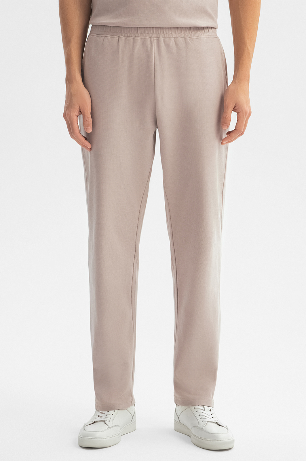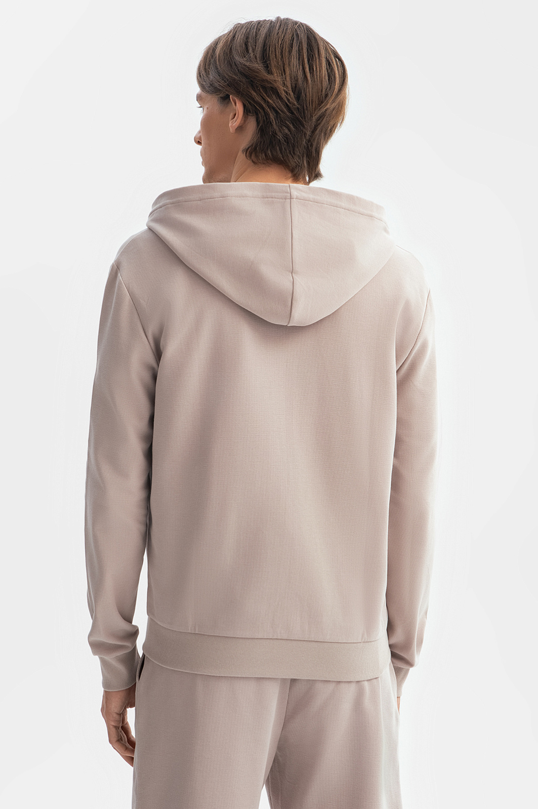 На создание светло-бежевого костюма KANZLER из хлопка дизайнеров вдохновили обитатели дорогих европейских курортов. Он располагает к безмятежному отдыху — позднему завтраку, приятным домашним делам и неспешной прогулке по окрестностям в поисках порции бодрящего кофе. Комплект составлен из толстовки на молнии с капюшоном и свободных удобных брюк. Современный минималистичный характер подчеркивают лаконичные детали, небольшой фирменный логотип и функциональный крой. Мягкий воздухопроницаемый гипоаллергенный хлопок (95%) обеспечивает телу комфорт. Небольшая добавка спандекса укрепляет материал и помогает сохранять форму.