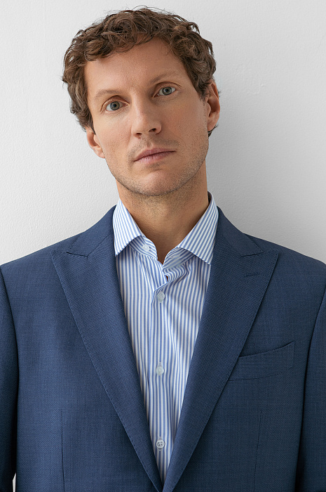 Роскошный синий костюм KANZLER из шерсти мериноса подходит для официальных мероприятий, переговоров и светских вечеров. Мягкое плечо делает посадку пиджака непринуждённой и естественной. Слегка заострённый лацкан и нагрудный карман с листочкой подчёркивают изысканность кроя. Строгие стрелки на брюках вытягивают силуэт и придают фигуре стройность. Водоотталкивающая обработка помогает костюму оставаться безупречным в условиях переменчивой погоды. Дорогая ткань из шерсти мериноса бережно сохраняет естественное тепло, создавая идеальный микроклимат.
