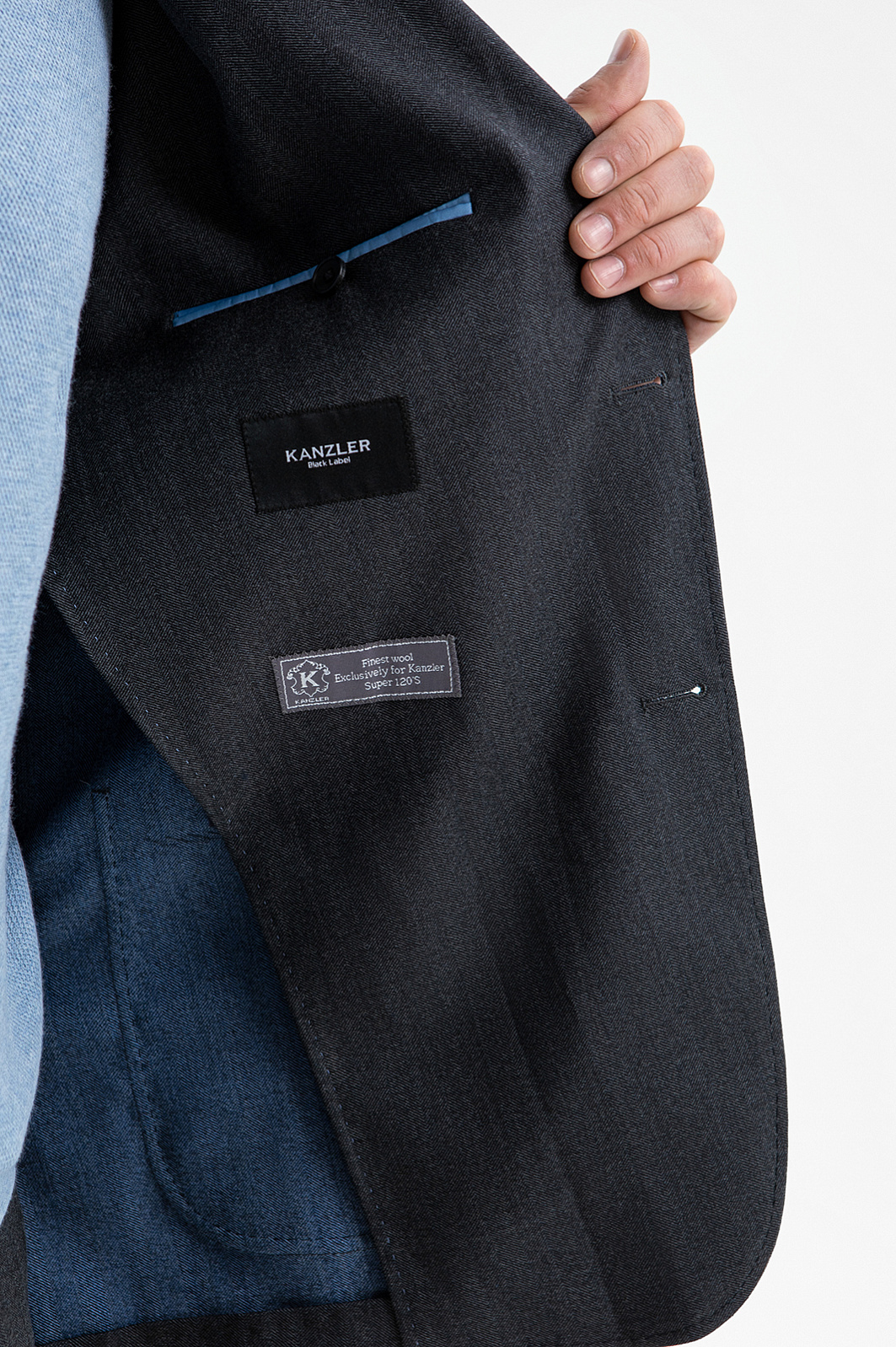 Костюм KANZLER из благородной шерсти мериноса спокойного синего цвета создан для реалистов, которым необходима элегантная и универсальная одежда для повседневной жизни: деловых встреч, поездок и неформальных мероприятий. Умеренно свободный крой костюма обеспечивает высокий уровень комфорта, позволяя чувствовать себя раскованно в любой обстановке. Широкие лацканы пиджака подчёркивают мужественный характер образа. Стрелки на брюках задают вертикальные линии и делают любую фигуру легче. Дорогая премиальная ткань, устойчивая к сминанию и загрязнениям, выглядит безупречно весь день. Она создана из тончайшей шерсти Супер 120S (98%), которая бережно сохраняет тепло тела. Небольшая добавка эластана (2%) служит для пластичности и поддержания формы ткани.