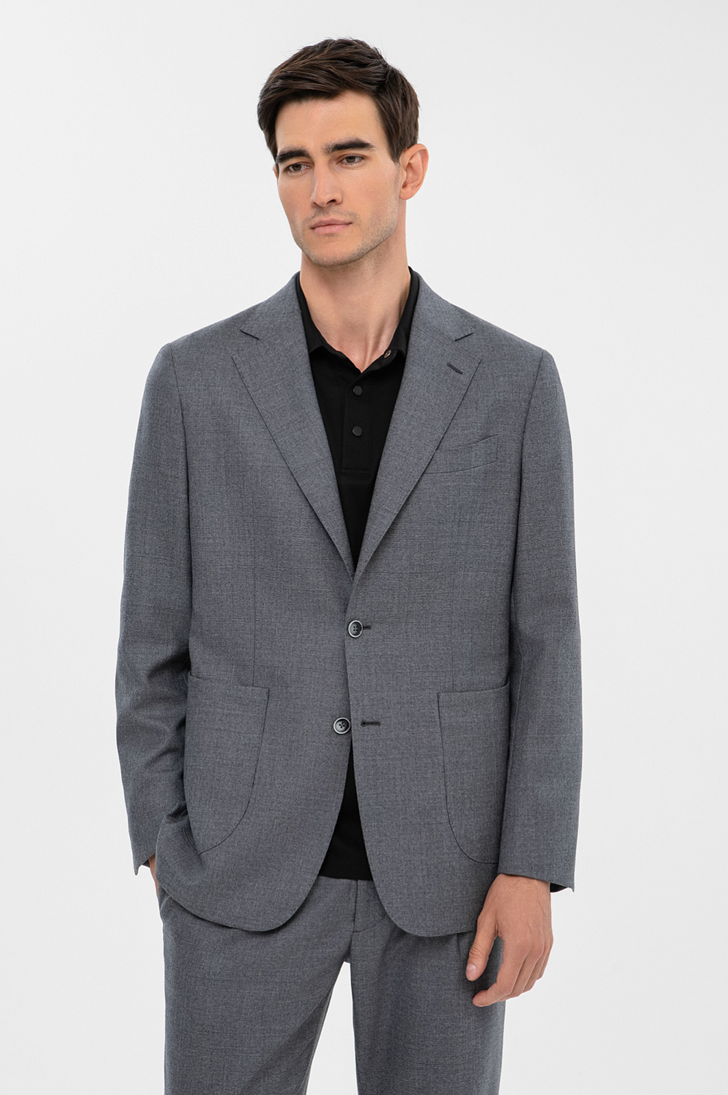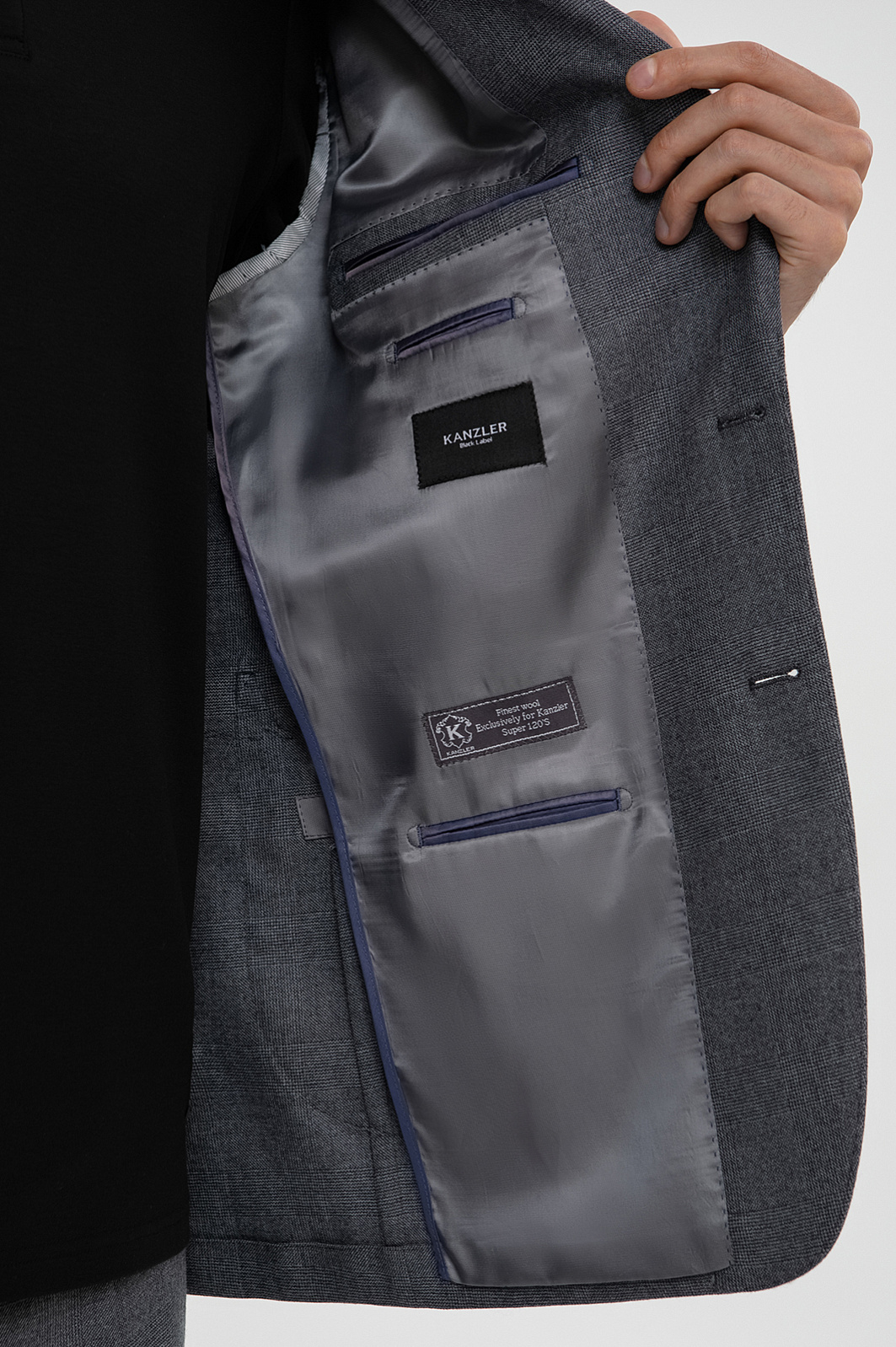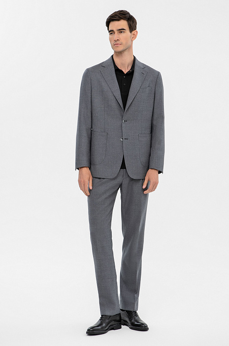 Серый костюм KANZLER из премиальной шерстяной ткани Супер 120S с неброским клетчатым узором адресован приверженцам стиля бизнес-кежуал, которые заняты делом, но не отказывают себе ни в комфорте, ни в элегантности. Костюм наследует классические черты, но позволяет себе и вольности — свободный крой и узор в тонкую клетку имени принца Уэльского, который сегодня воспринимается в формальной деловой одежде очень благосклонно. Пиджак имеет две шлицы, пуговицы в тон и карманы — пару внешних накладных, нагрудный с листочкой и внутренние. Брюки — заложенную спереди складку. Высочайший уровень комфорта воплощен в дорогой износоустойчивой ткани из 100-процентной шерсти мериноса (Супер 120S), которая удерживает естественное тепло и позволяет носить костюм так часто, как этого хочется.