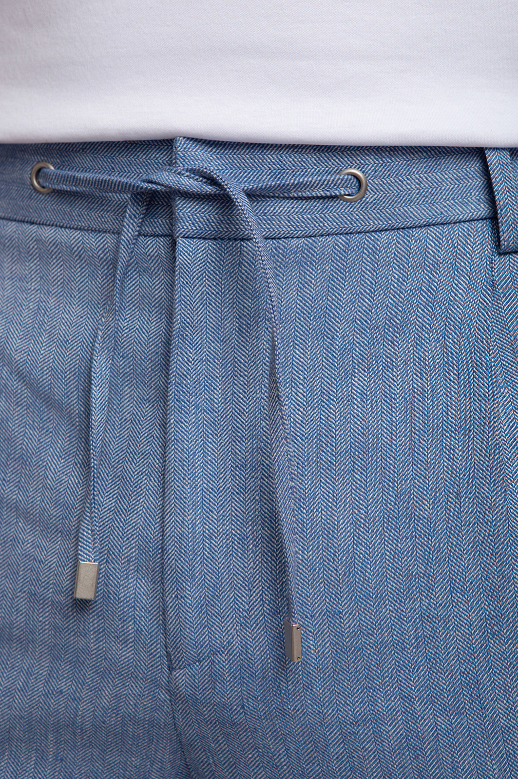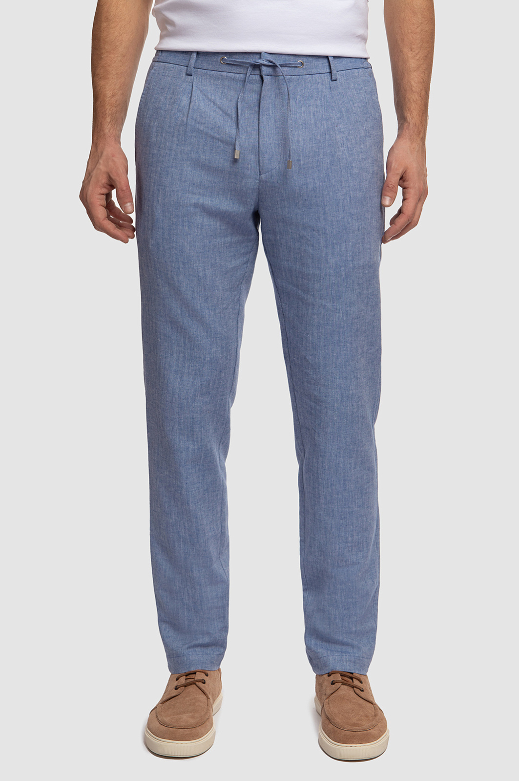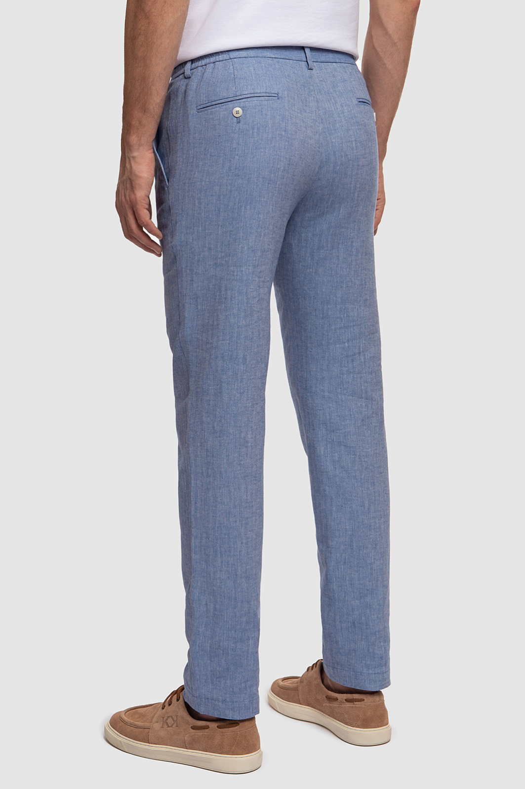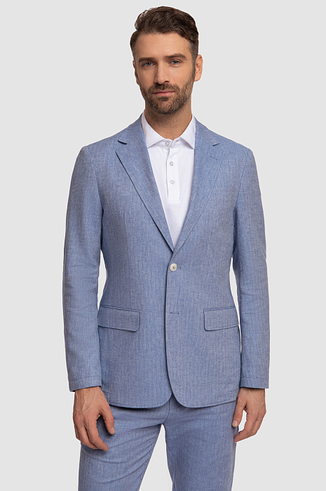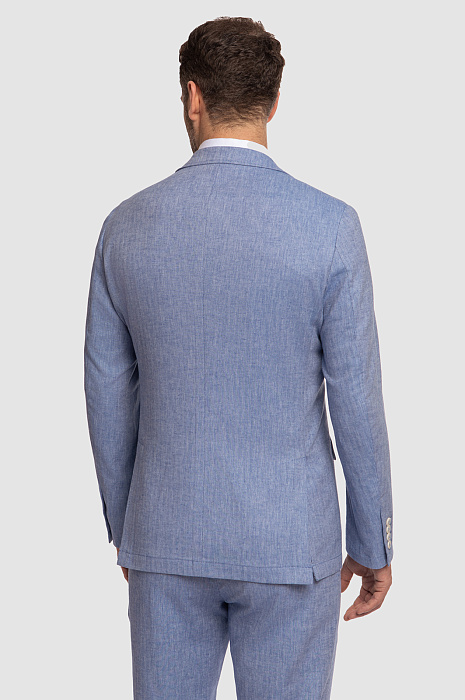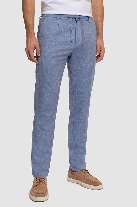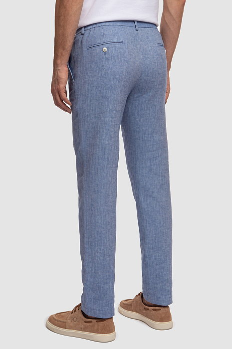 Голубой костюм изо льна и хлопка с брюками на кулиске