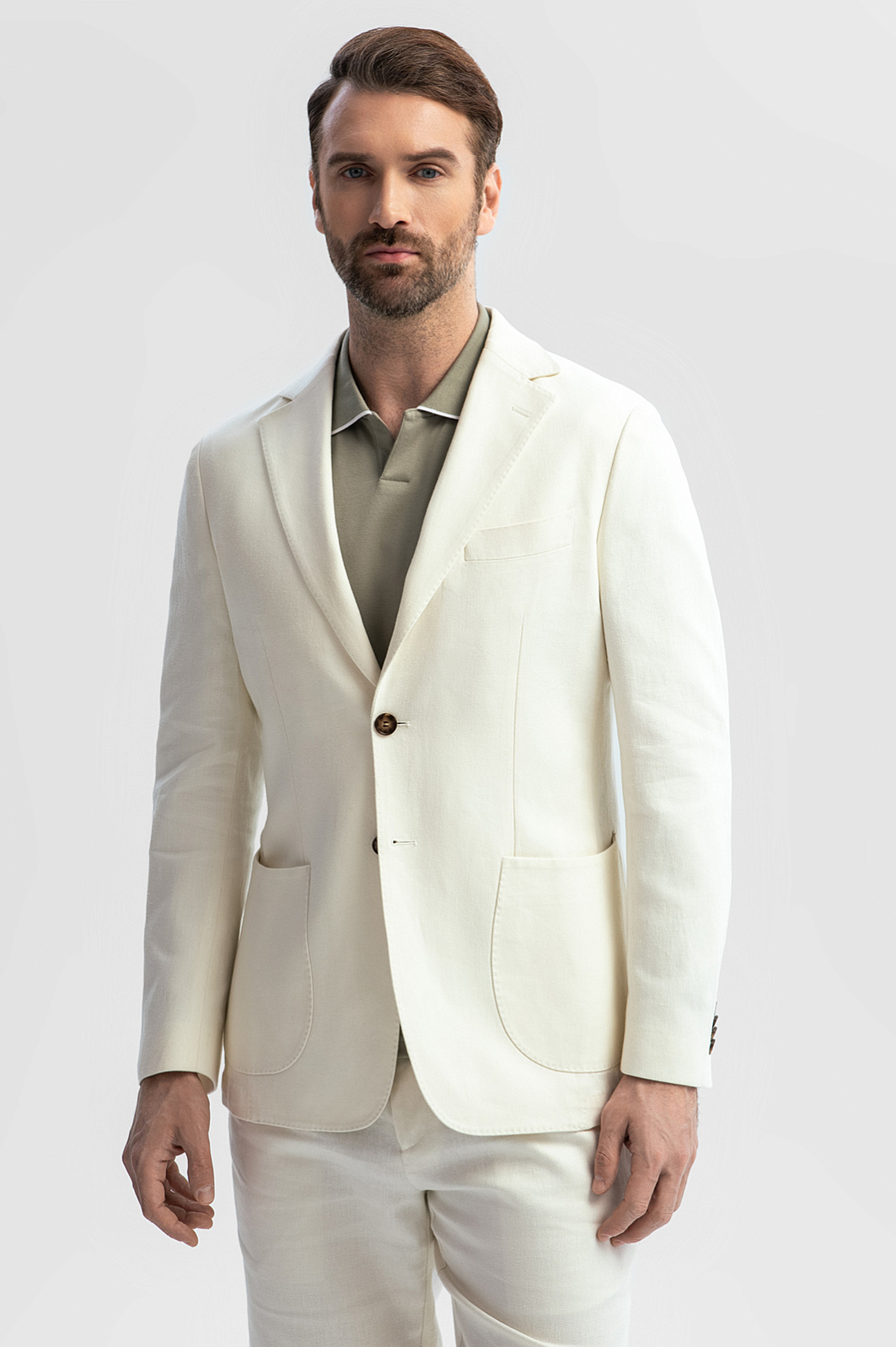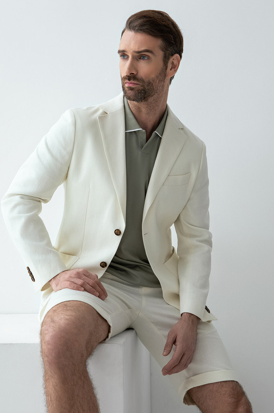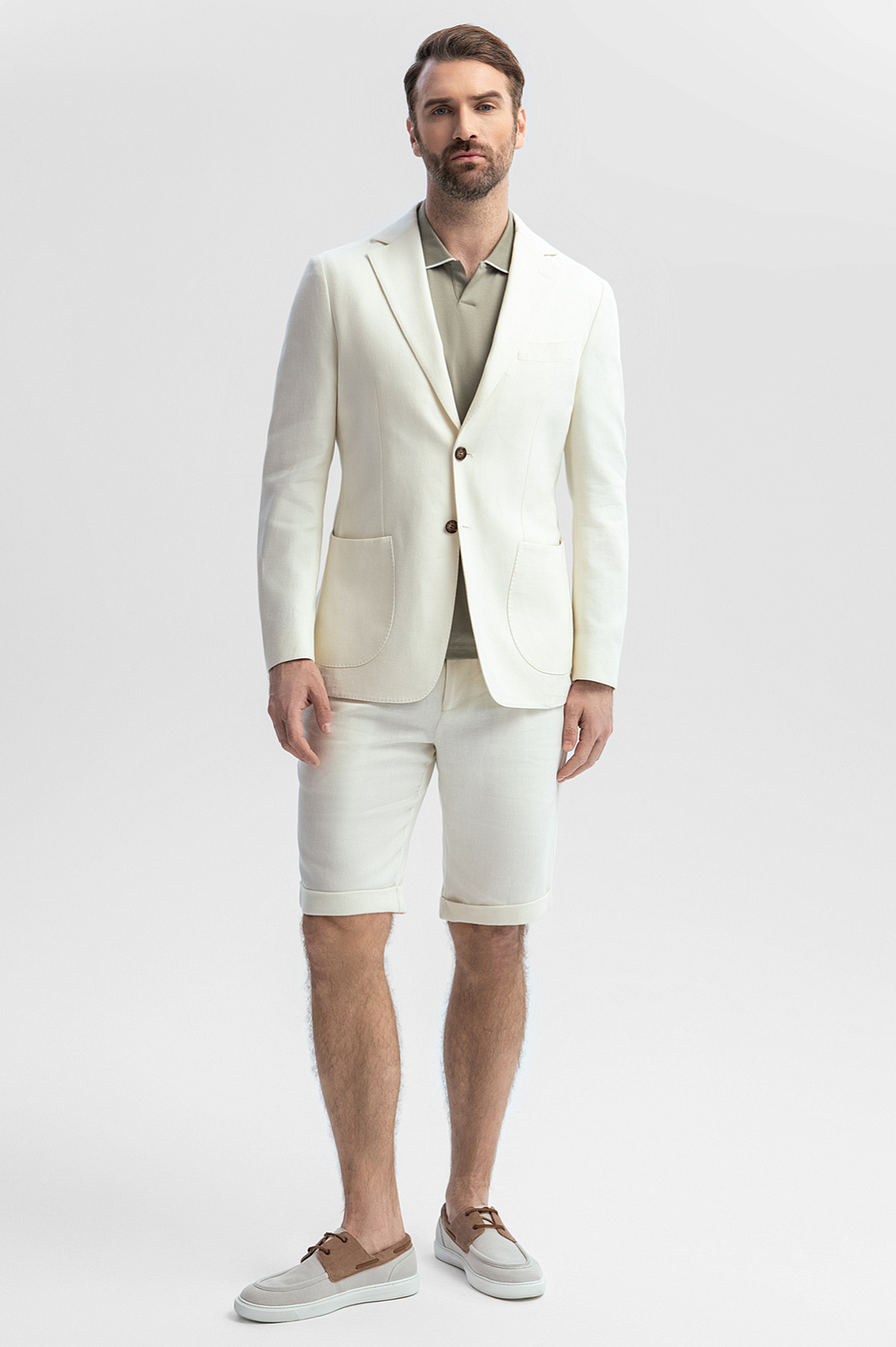 Белый костюм KANZLER изо льна и тенсела с шортами обеспечит элегантный и безупречный вид в раскаленном городе. Жарким летом в нем можно отправиться в офис, где царит гуманный дресс-код, на прогулку или неформальную встречу. Двойка состоит из облегченного пиджака без подкладки изящного прилегающего кроя и удобных свободных шортов на кулиске с отворотами. Прикосновение к ткани из природных слегка шероховатых волокон дарит чувственное удовольствие. В составе гипоаллергенного материала — прочный гладкий лен, охлаждающий кожу в жару, и тенсел, который отводит лишнюю влагу и поддерживает свежесть тела.