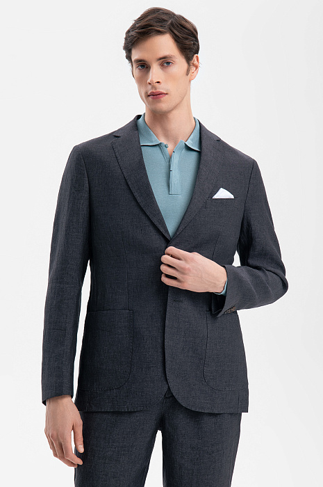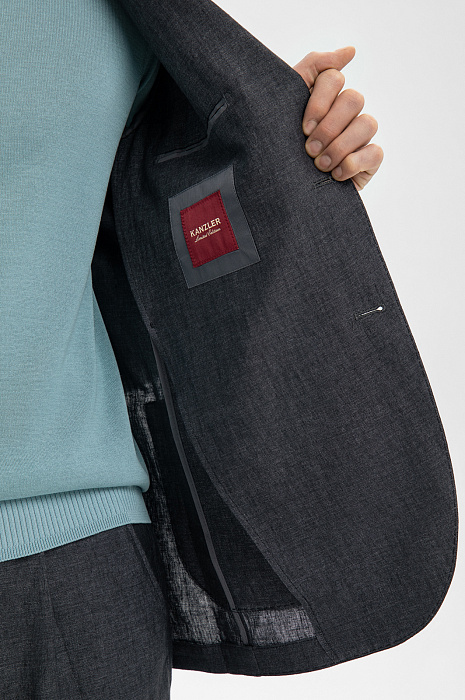 Роскошный темно-серый костюм KANZLER из коллекции Limited Edition сочетает современные черты и высшую степень безупречного утонченного стиля, проверенного временем. Он сшит из дорогой льняной ткани, которую производит итальянская фамильная мануфактура Vitale Barberis, основанная более 360 лет назад. Облегченный пиджак прилегающего кроя с накладными карманами, пуговицами в тон и двумя шлицами сзади дополнен удобными умеренно свободными брюками с защипами. Красивая фактурная ткань изо льна (100%) идеально подходит для межсезонья и теплых дней. Натуральные гипоаллергенные волокна поддерживают циркуляцию воздуха и приятную для тела температуру.