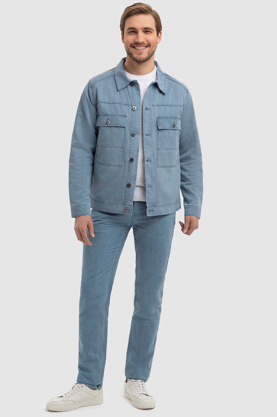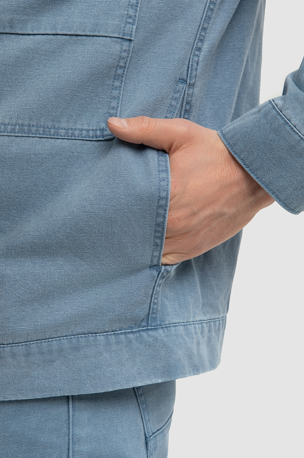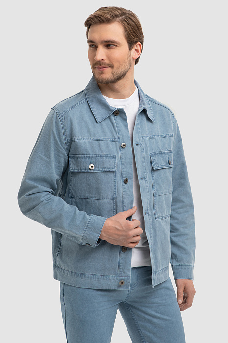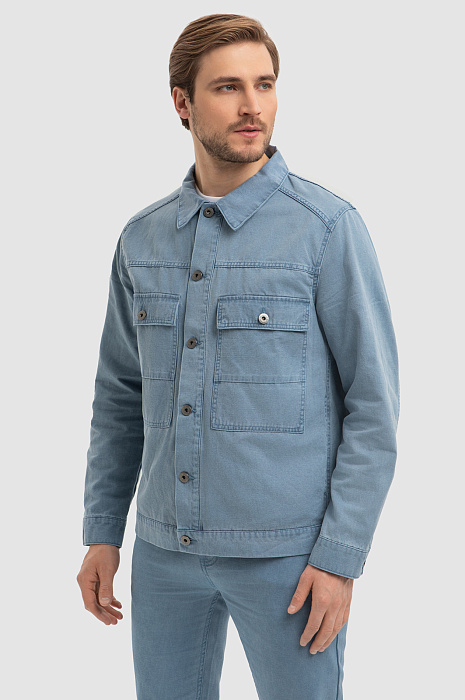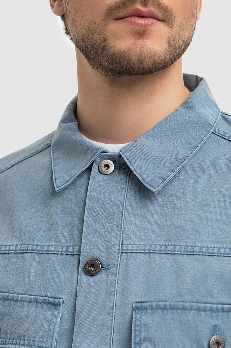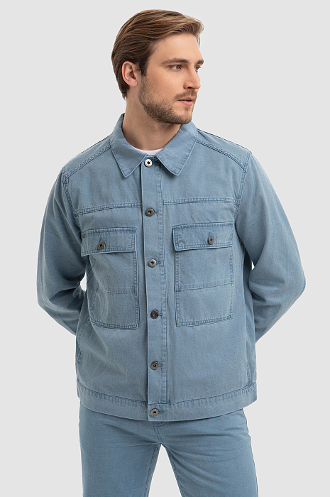 Куртка джинсовая с добавлением льна, цвет голубой, цена 7 990 руб., код 266725 - купить в Москве в интернет-магазине KANZLER