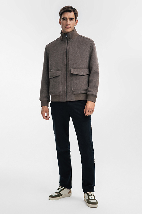 Представляем стильную куртку KANZLER из смесовой шерсти в одном из самых актуальных оттенков этой осени — серо-коричневом. Благородная фактура ткани подчеркивает элегантность модели, а высокий воротник и объемные накладные карманы на клапанах добавляют изделию практичности. Застежка на молнию в тон куртке акцентирует внимание на лаконичном дизайне и продуманности деталей. Трикотажные манжеты и резинка внизу обеспечивают идеальную посадку и защиту от ветра. Особого внимания заслуживает смесовый состав: шерсть обеспечивает тепло и комфорт, а полиэстер — долговечность и износостойкость. Рекомендуем завершить образ водолазкой из шерсти и кашемира и классическими брюками — получится элегантный и модный комплект в трендовых оттенках. Параметры модели: рост 192, 101-76-97 Размер на модели: 50