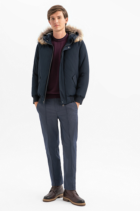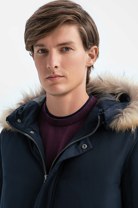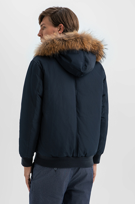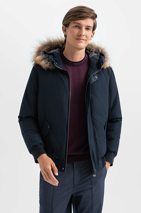 Синяя куртка с натуральным мехом и водоотталкивающей обработкой