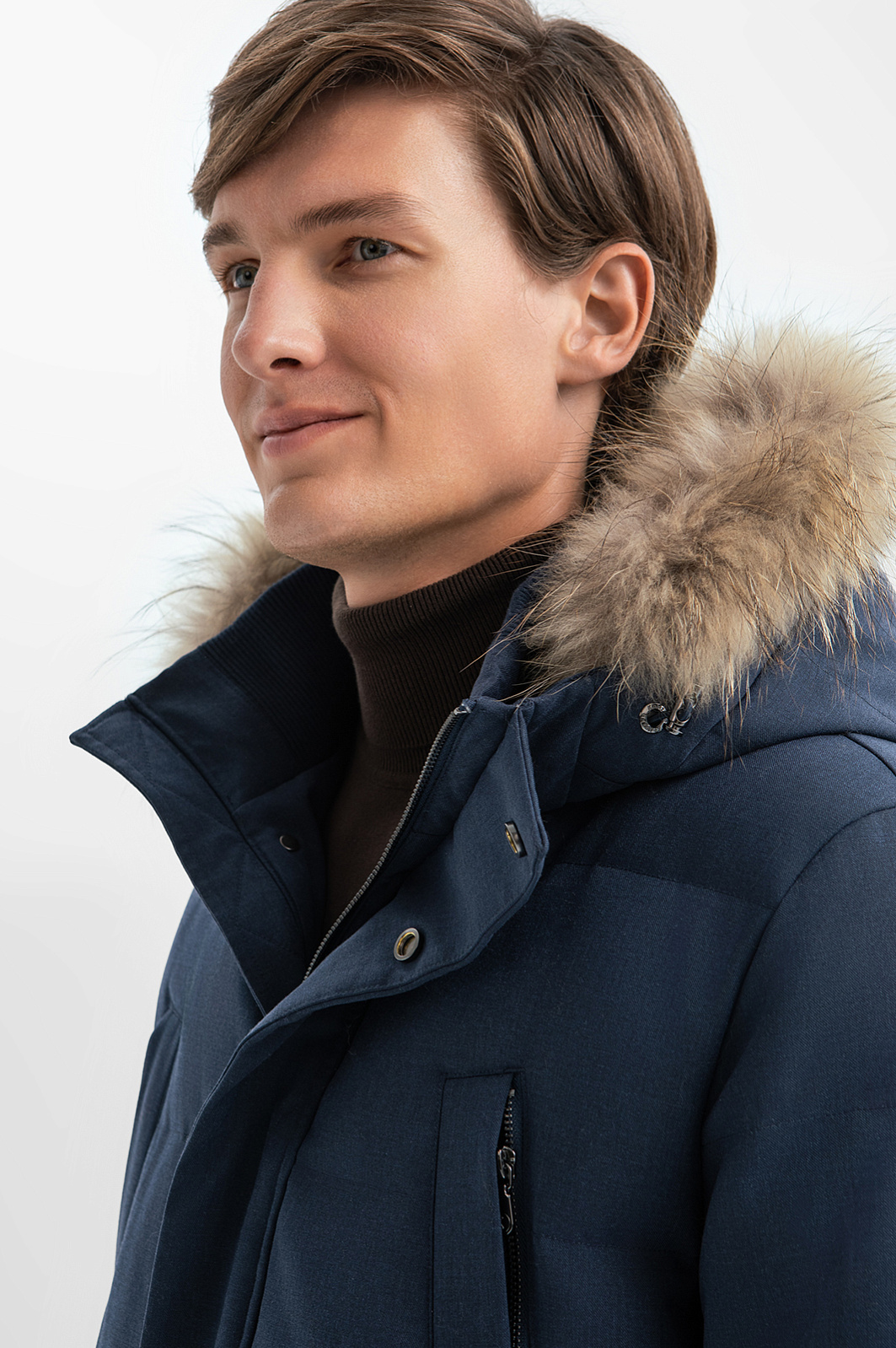 Куртка с натуральным мехом и водоотталкивающей обработкой, цвет синий, цена 24 990 руб., код 268239 - купить в Москве в интернет-магазине KANZLER