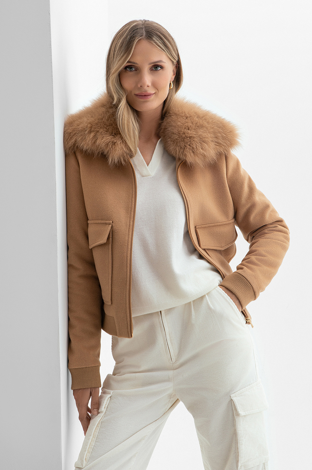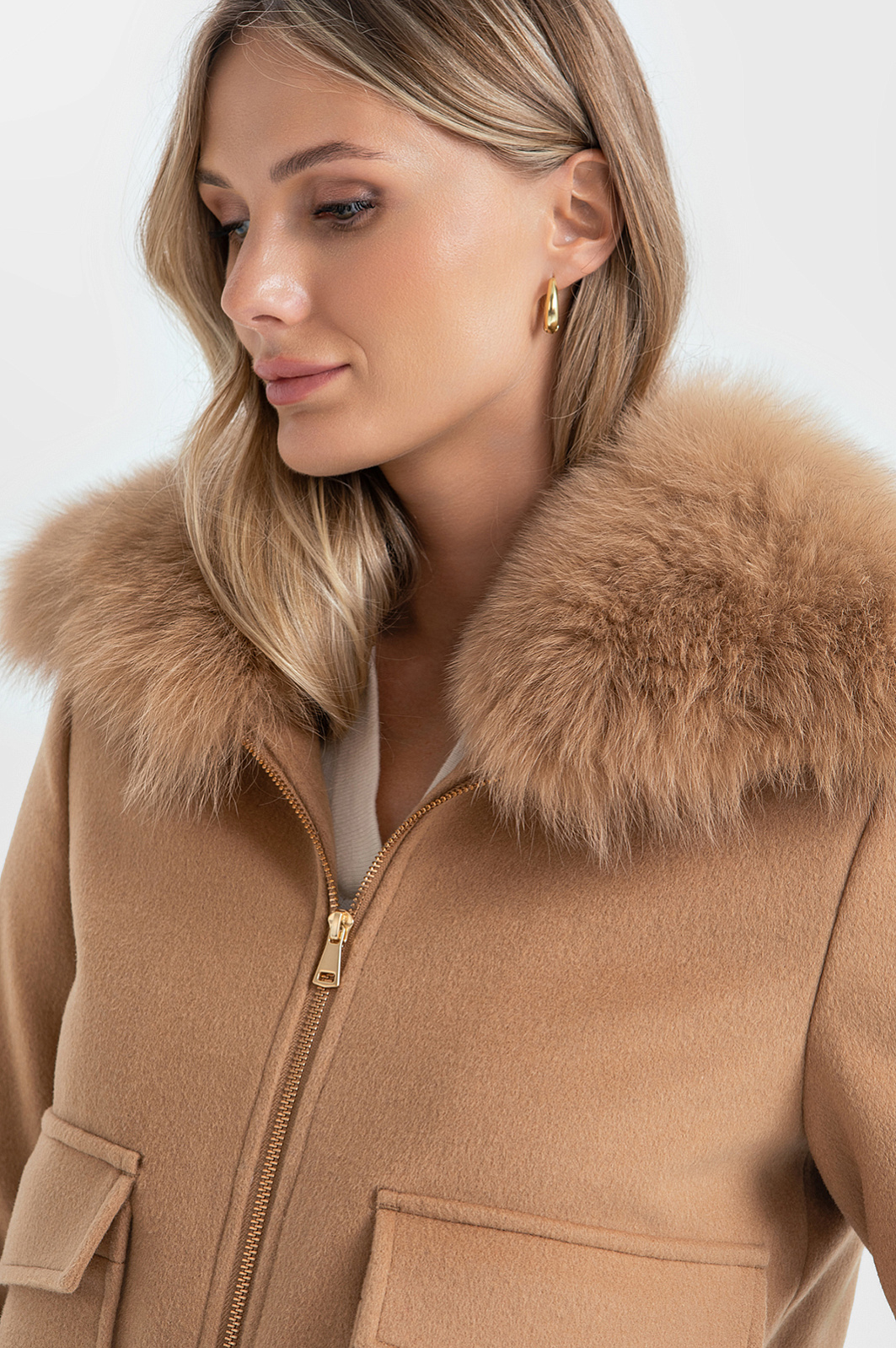 Куртка из шерсти и кашемира с натуральным мехом, цвет бежевый, цена 24 493 руб. - купить в интернет-магазине KANZLER