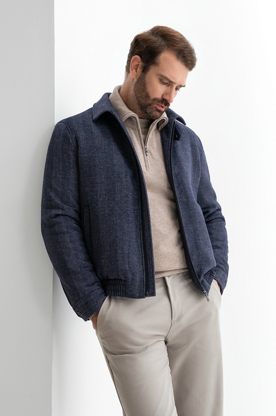 Куртка из смесовой шерсти, цвет синий, цена 16 990 руб., код 270002 - купить в Москве в интернет-магазине KANZLER