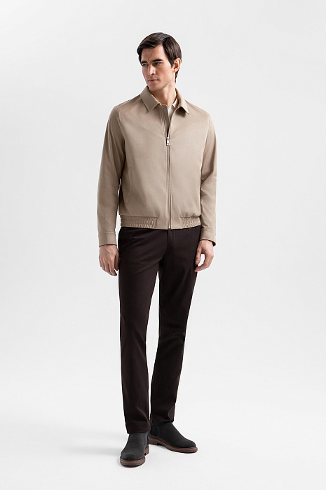 Бежевая куртка KANZLER из алькантары на молнии отлично подходит для городских прогулок и рабочих встреч. Ее можно сочетать с деловыми брюками или джинсами, джемперами и рубашками. Минималистичный дизайн дополнен акцентными деталями — мягким аккуратным воротником и манжетами на пуговице. Карманы на молнии — пара наружных и один внутренний — предназначены для хранения важных мелочей. Резинка по низу куртки обеспечивает плотное прилегание краёв и аккуратную посадку. Куртка защищает от ветра и согревает в сухую прохладную погоду. Внешний слой выполнен из алькантары — долговечного и устойчивого к загрязнениям материала. Подкладка сделана из дышащей смесовой ткани.