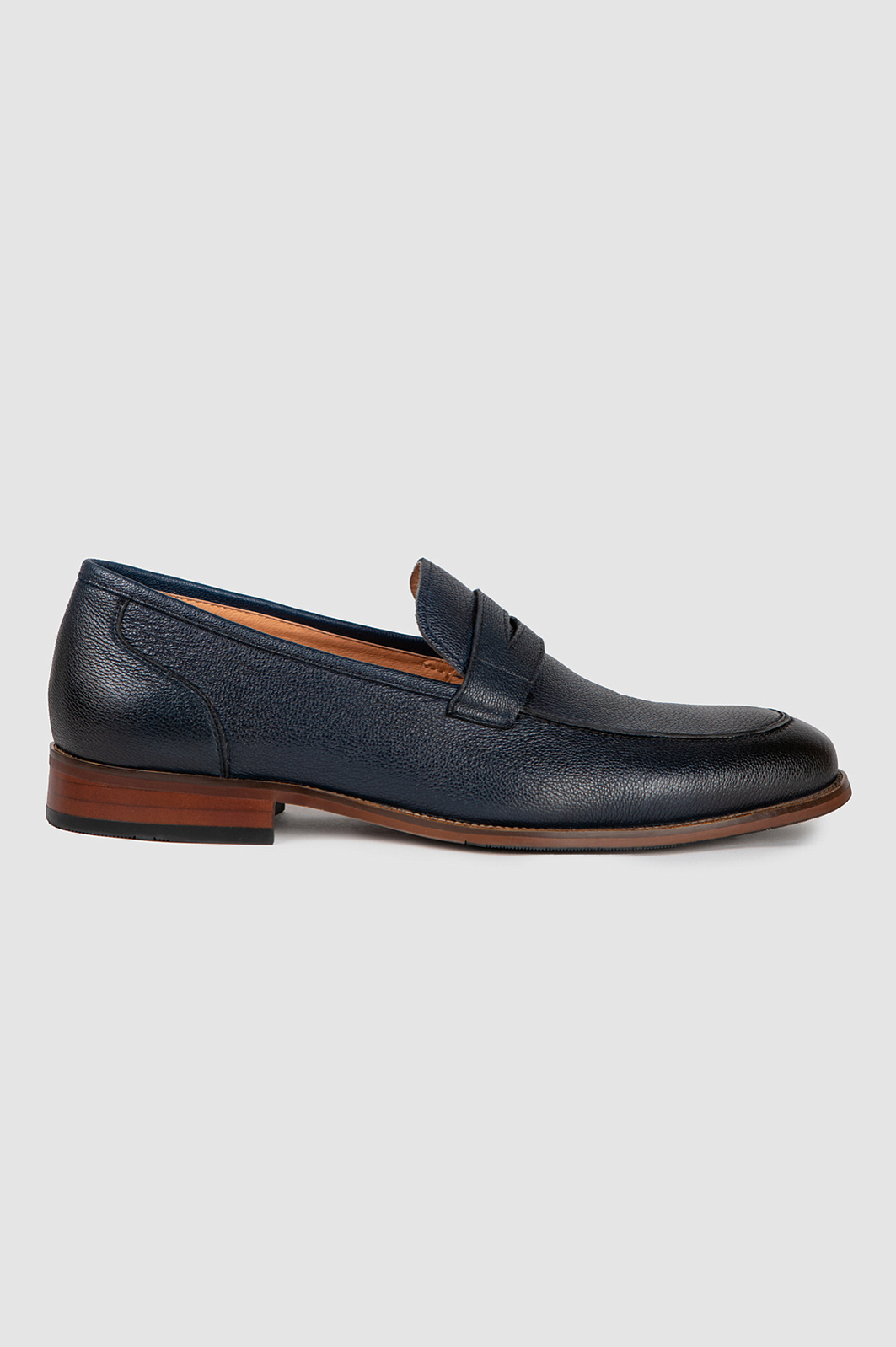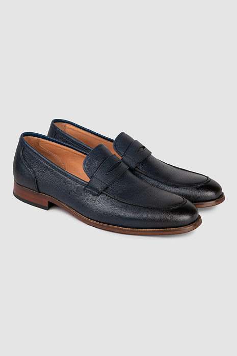 Элегантные темно-синие кожаные пенни-лоферы KANZLER отлично сочетаются с умеренно деловой и неофициальной одеждой — прямыми, слегка зауженными синими джинсами и нестрогими брюками. Традиционные детали — ребристый рант, кожаный язычок в верхней части союзки и широкий наборный каблук — придают модели шик и основательность. Верх выполнен из натуральной зернистой кожи — долговечного и практичного материала. Подкладка и стелька — тоже из кожи, чтобы обеспечить ногам максимальный комфорт в течение дня. Надежная подошва из резины обеспечивает устойчивость.