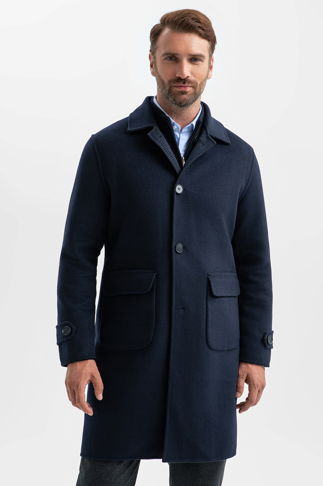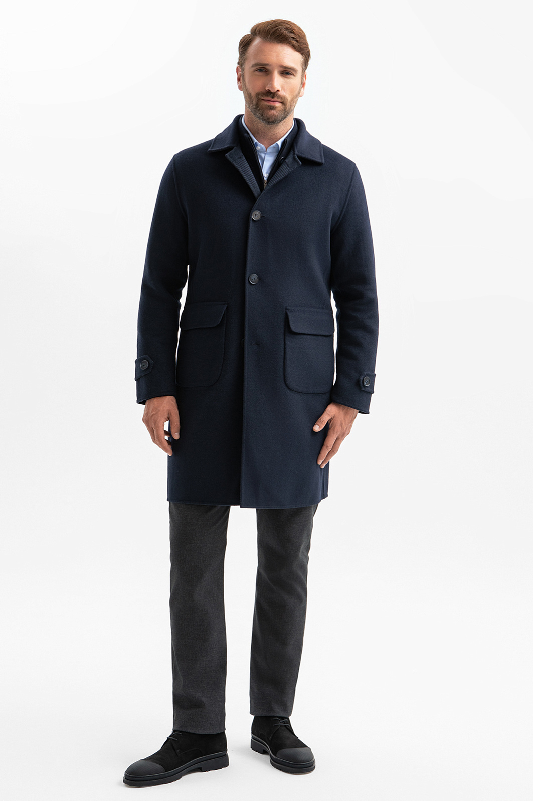 Элегантное двустороннее пальто KANZLER из смесовой шерсти дает возможно менять однотонный синий верх на тонкую клетку. В первом случае пальто будет выглядеть минималистично и строго, во втором — более неформально и мягче. Обе стороны имеют накладные карманы с клапаном. Прямой крой со шлицей сзади не сковывает движения при ходьбе. Модель прекрасно сочетается с одеждой в деловом и повседневном стилях. Смесовая шерсть бережет тепло. Упругие натуральные волокна не мнутся. Для прочности, долговечности и износоустойчивости в ткань добавили волокна полиэстера.