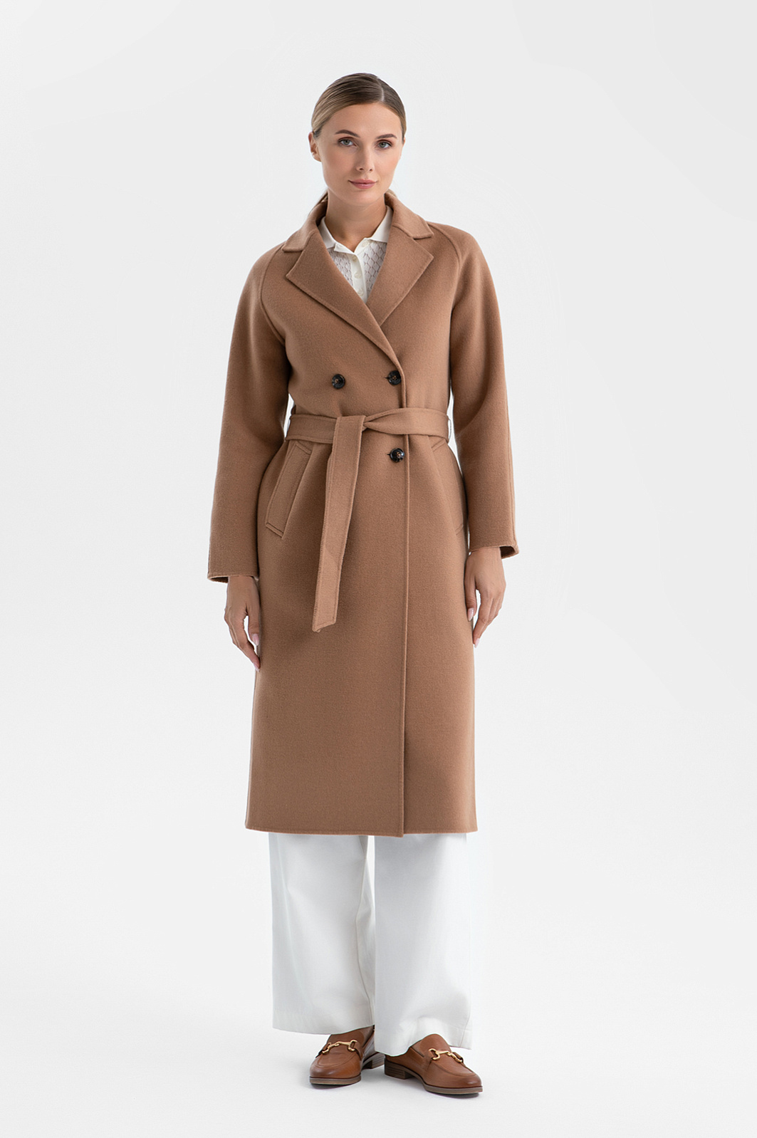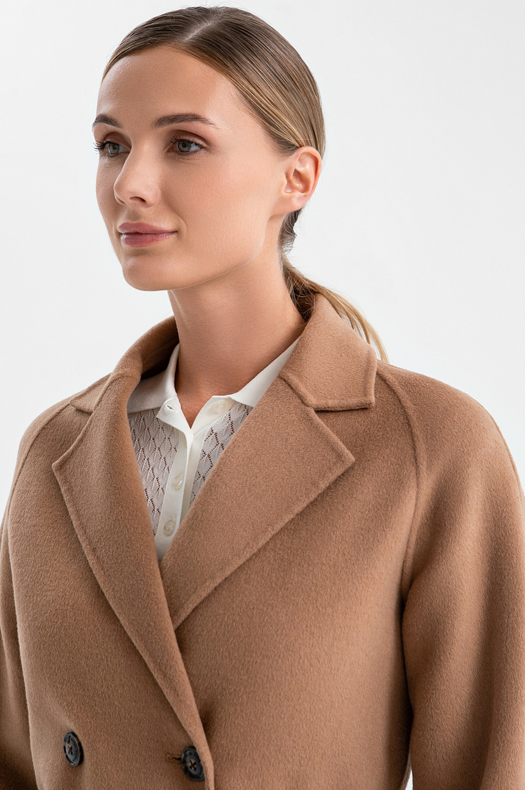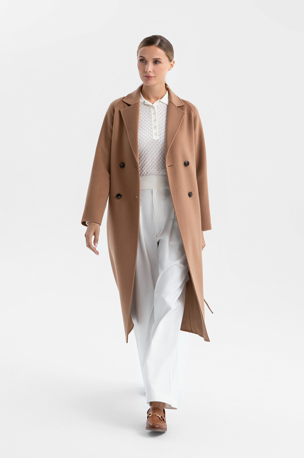 Пальто KANZLER из смесовой шерсти с добавлением кашемира — современная интерпретация классики. Выверенные пропорции и лаконичные детали — идеальный вариант для тех, кто ценит сдержанную роскошь, практичность и уверенный стиль в холодное время и межсезонье. Бежевый оттенок актуален всегда и легко сочетается с базовыми цветами гардероба. Двубортный крой подчёркивает строгость и утончённость пальто, создавая элегантный выразительный силуэт. Мягкая линия плеча придаёт образу расслабленность и женственность, а пояс выделяет линию талии и помогает адаптировать посадку под индивидуальные особенности фигуры. Универсальная длина чуть ниже колена подходит как для деловых, так и для повседневных образов. Тёплая ткань из смесовой шерсти обеспечивает комфорт в прохладные и холодные дни. Благодаря добавлению натурального кашемира материал отличается приятной нежной фактурой.