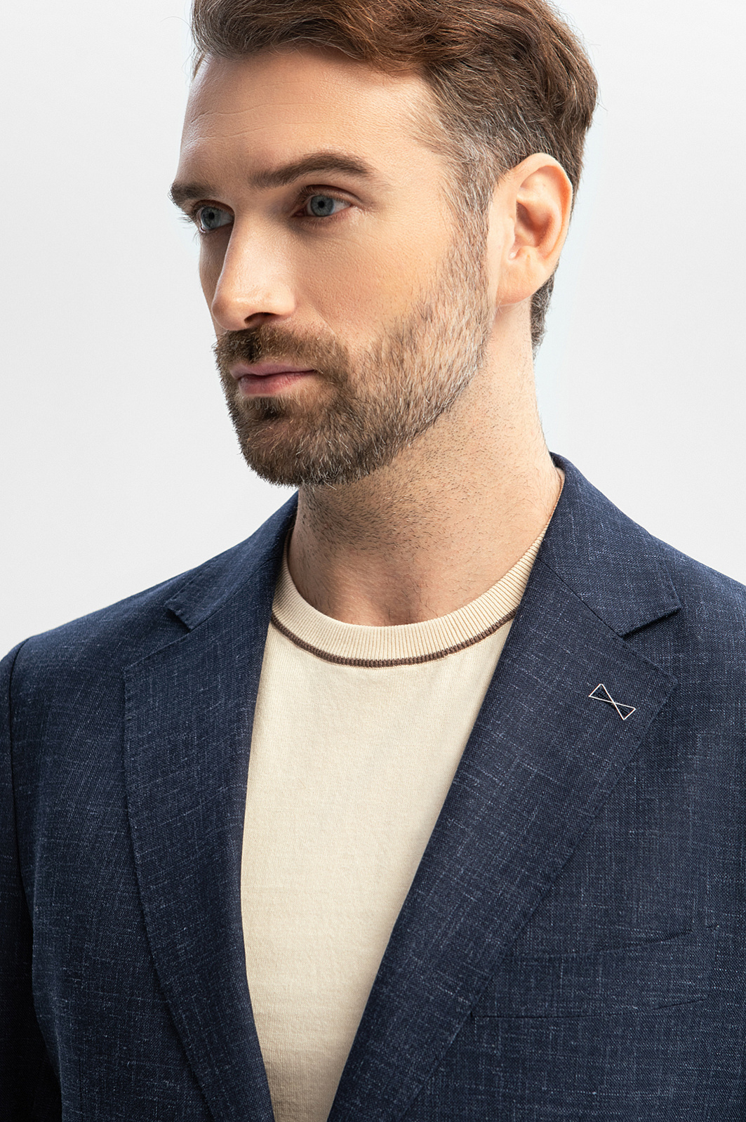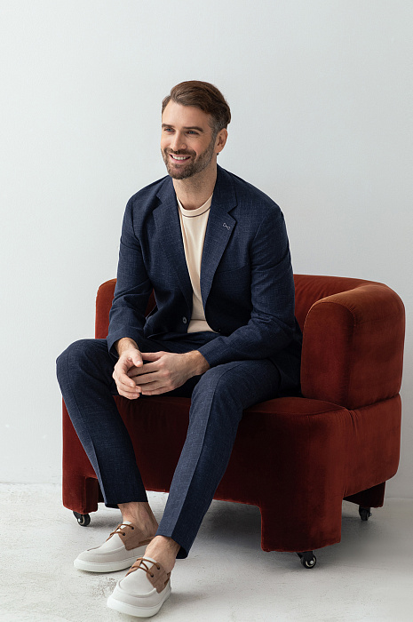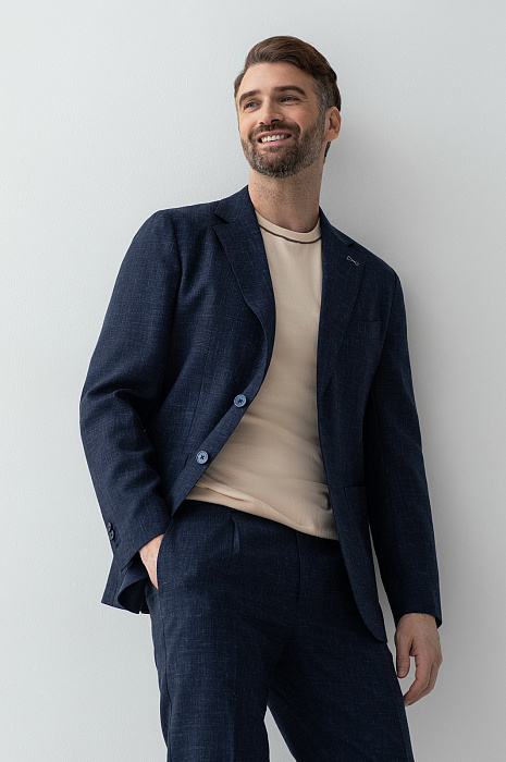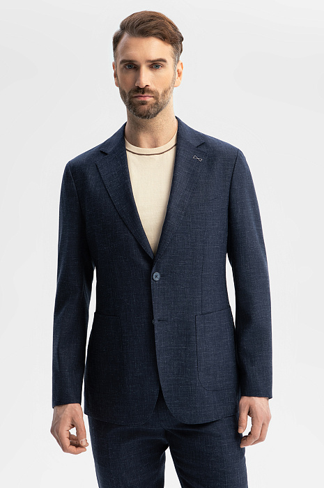 Синий пиджак из шерсти, льна и шелка
