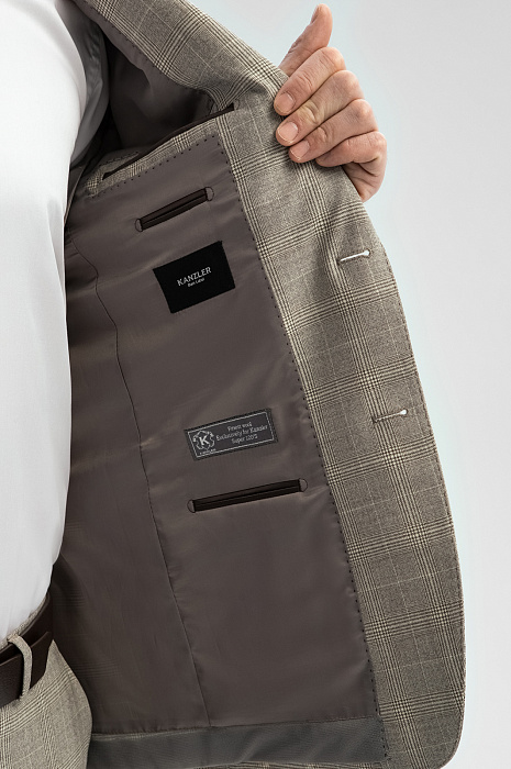 Пиджак из шерсти в клетку, цвет коричневый, цена 24 990 руб., код 268979 - купить в Москве в интернет-магазине KANZLER
