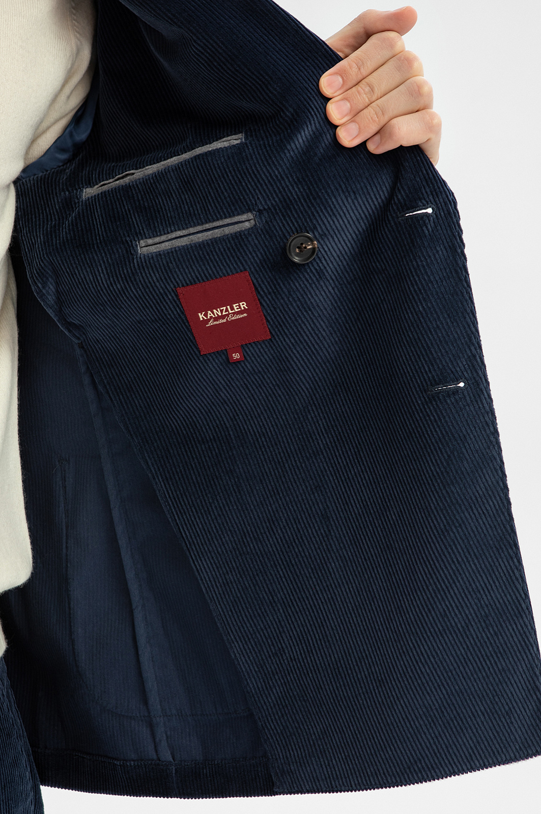 Пиджак из вельвета Duca Visconti Di Modrone, лимитированная коллекция, цвет синий, цена 24 990 руб., код 269371 - купить в Москве в интернет-магазине KANZLER