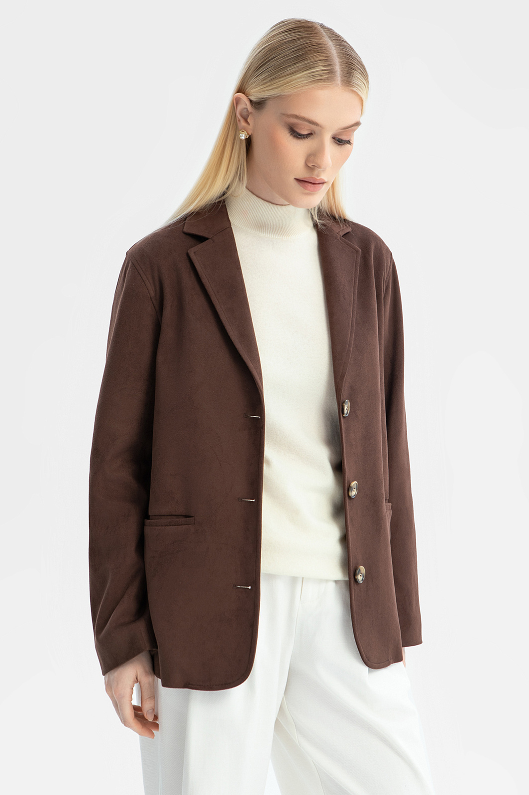 Пиджак из алькантары, цвет коричневый, цена 12 990 руб. - купить в интернет-магазине KANZLER
