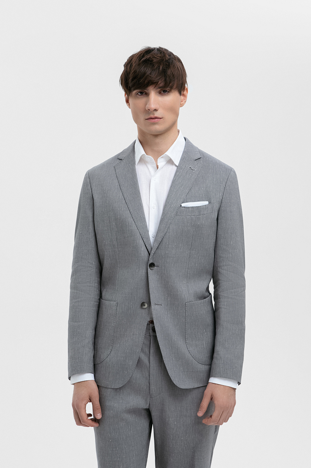 Пиджак из шерсти, льна и шелка, цвет серый, цена 26 990 руб., код 271037 - купить в Москве в интернет-магазине KANZLER