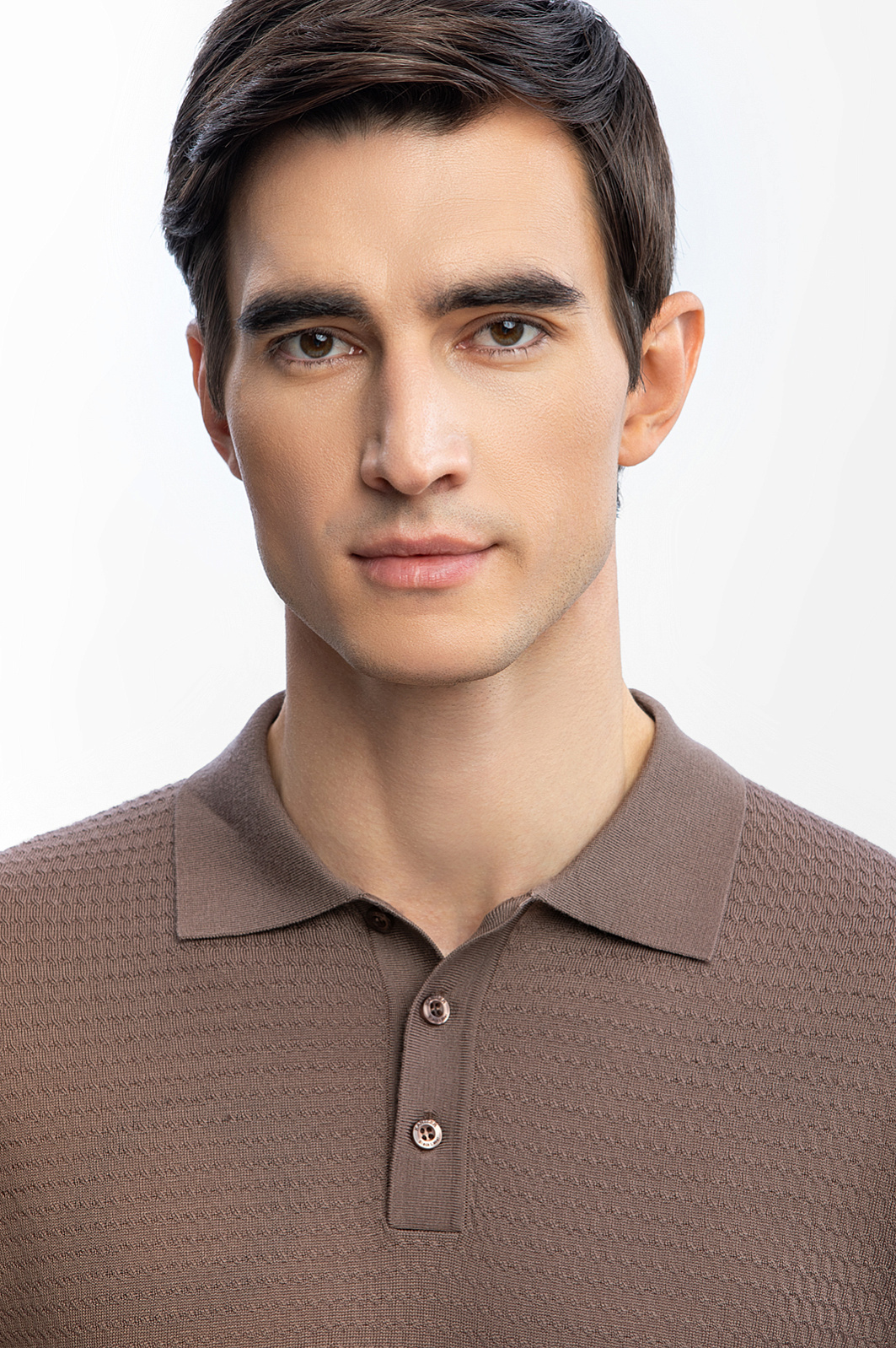 Поло KANZLER из тонкого шерстяного трикотажа оттенка молочного шоколада хорошо сочетается с джинсами в повседневных аутфитах и с пиджаком — в современных деловых образах. Трикотаж мягко облегает тело. Передняя часть украшена приятным слегка фактурным узором. Широкая трикотажная резинка обеспечивает хорошую посадку и надежно держит края. Ткань сделана из 100-процентной шерсти. Тонкие натуральные волокна быстро восстанавливают форму, не мнутся, придают материалу благородный вид и сохраняют тепло тела, защищая от холода и перегревания. Параметры модели: рост 192, 101-76-97 Размер на модели: M