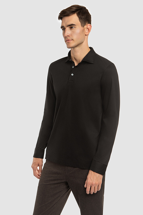 Черное поло из хлопка двойной мерсеризации