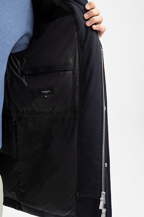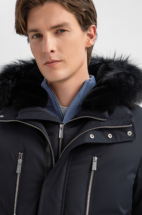 Пуховик с натуральным мехом и водоотталкивающей обработкой, цвет синий, цена 49 990 руб., код 269988 - купить в Москве в интернет-магазине KANZLER