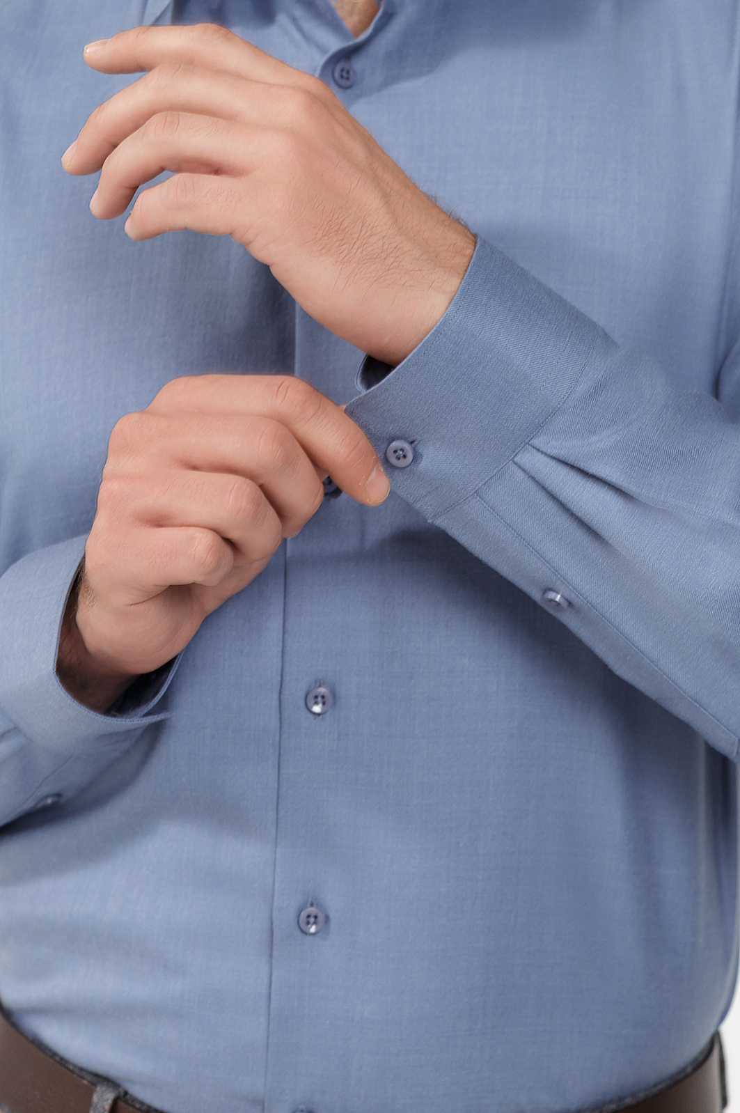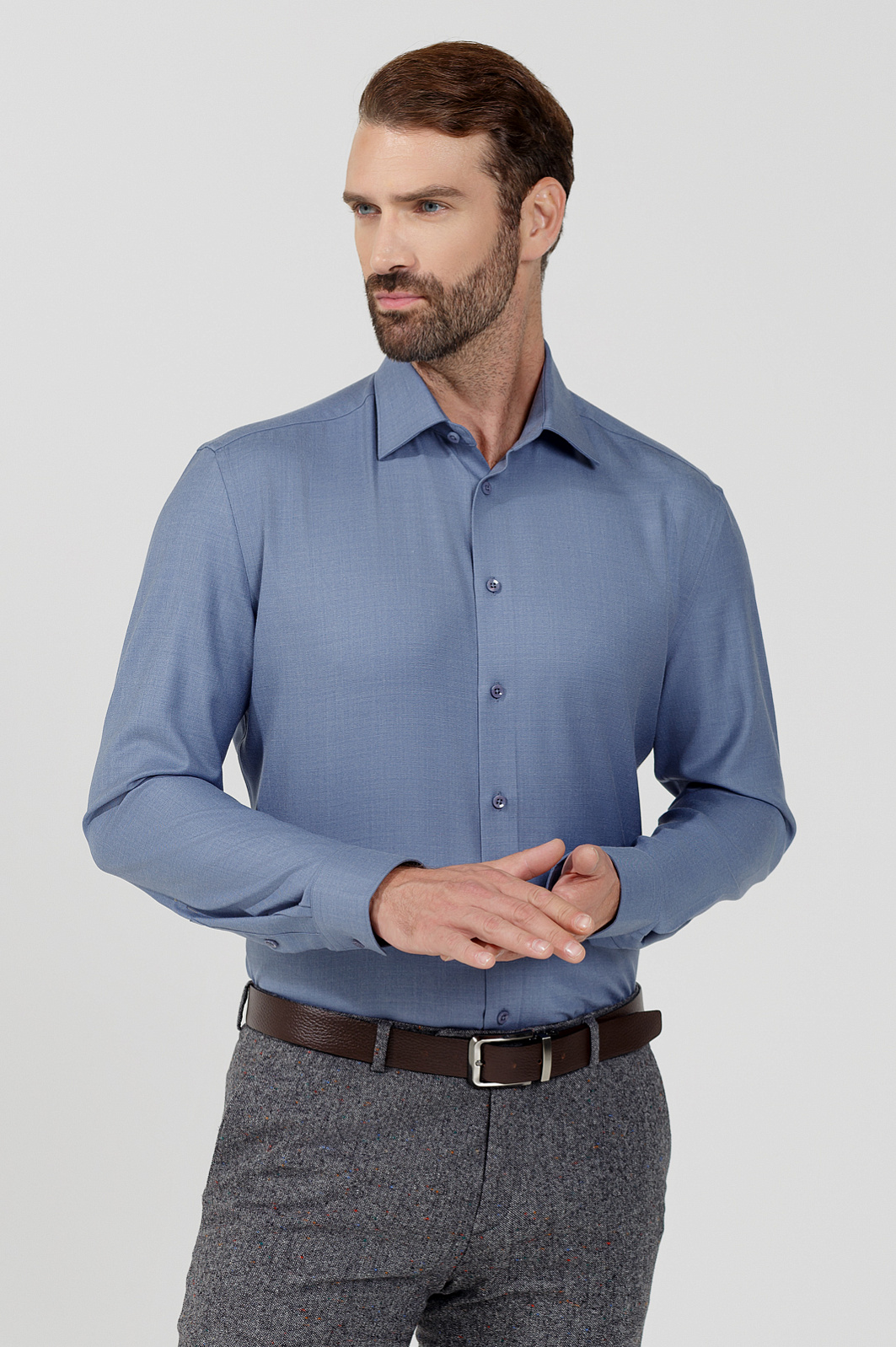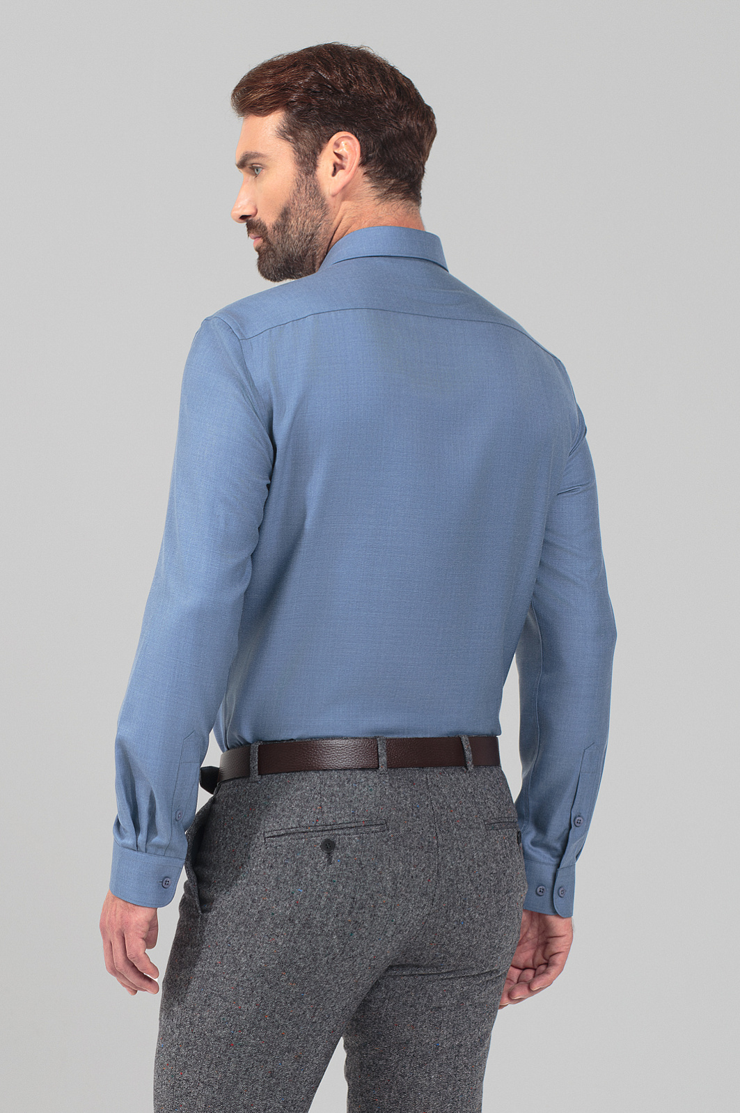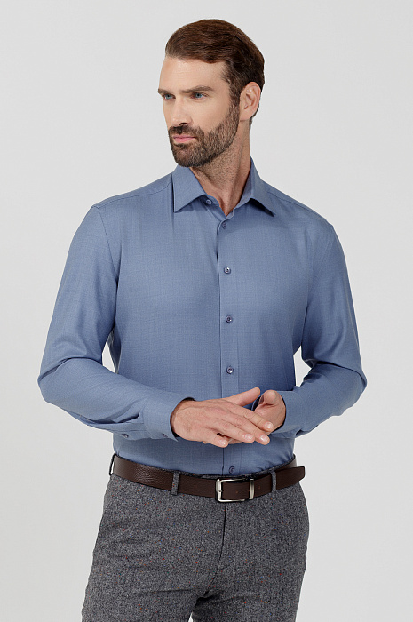 Рубашка из смесовой шерсти с возможностью машинной стирки, цвет голубой, цена 5 990 руб., код 268689 - купить в Москве в интернет-магазине KANZLER