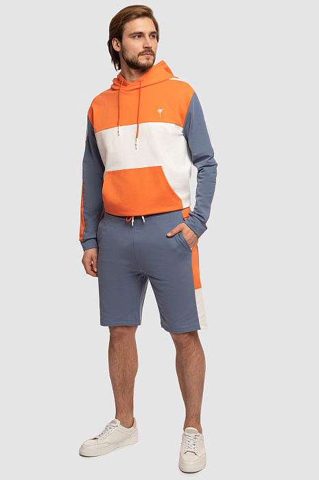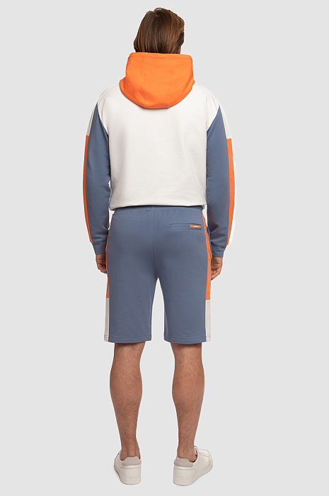 В серых трикотажных шортах будет комфортно и во время тренировок, и на загородной прогулке, и в путешествии. Для пошива изделия использовали мягкую натуральную ткань из премиального хлопка с добавлением нейлона и эластана. Состав обеспечивает легкость и прочность, малую сминаемость и устойчивость к растягиванию, что особенно необходимо для спортивной одежды. Принадлежность модели бренду обозначили контрастным логотипом на заднем кармане. В качестве основного стилистического элемента дизайнеры использовали прием, который позволяет комбинировать в образе разные оттенки геометричными блоками. Тему цветовых приемов продолжили контрастными деталями: шнурки, наконечники и брендированный патч. Получилось эффектное сочетание светло-серого, оранжевого и белого - идеально для образов в стиле спорт и спорт-шик. Шорты KANZLER хорошо пропускают воздух, приятно ощущаются на теле, а благодаря регулируемому поясу на кулиске, не сковывают движения. Наши стилисты советуют дополнить образ толстовкой из такого же материала и белыми кедами. Параметры модели: рост 187, 100-81-97 Размер на модели: M
