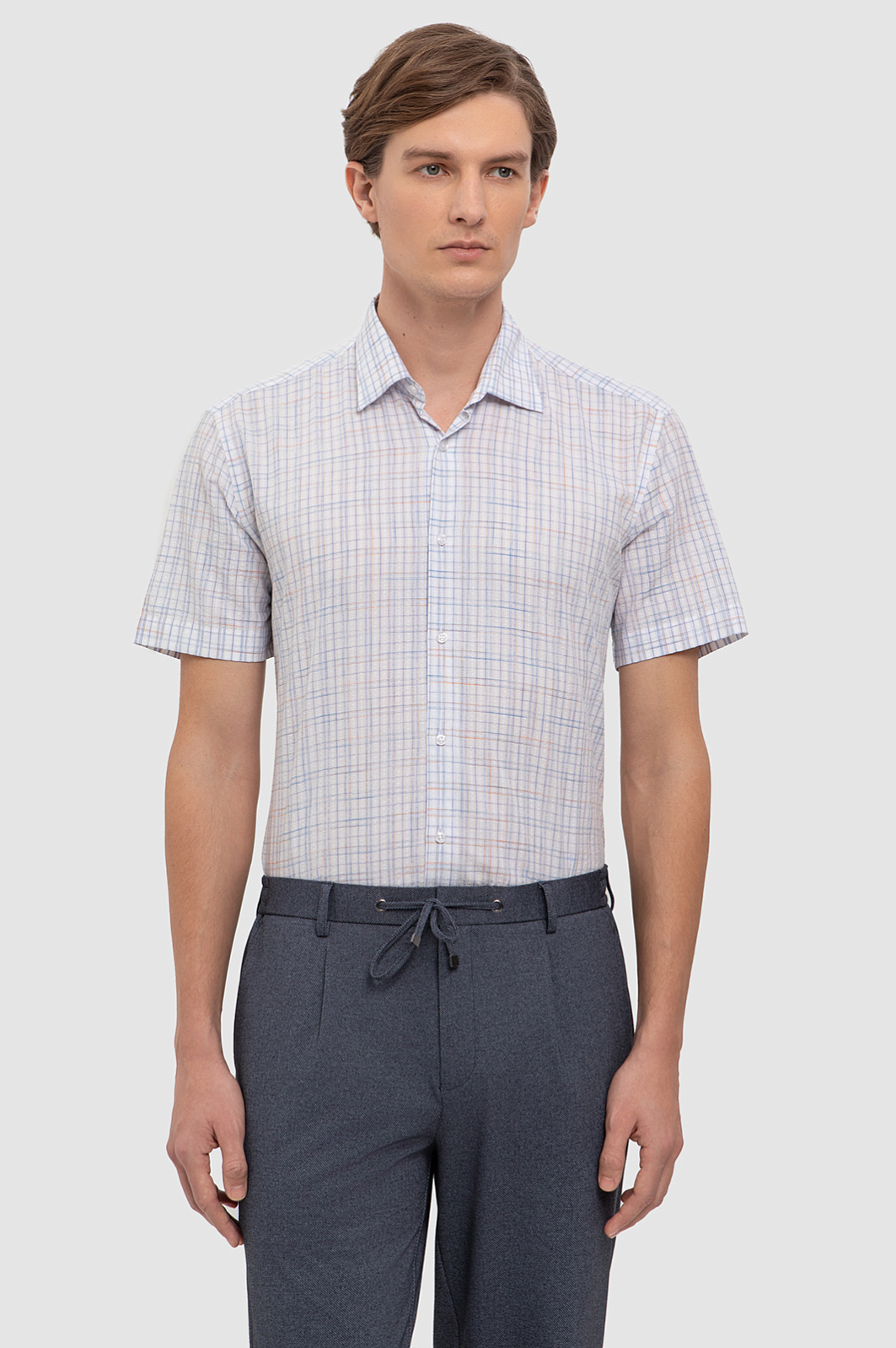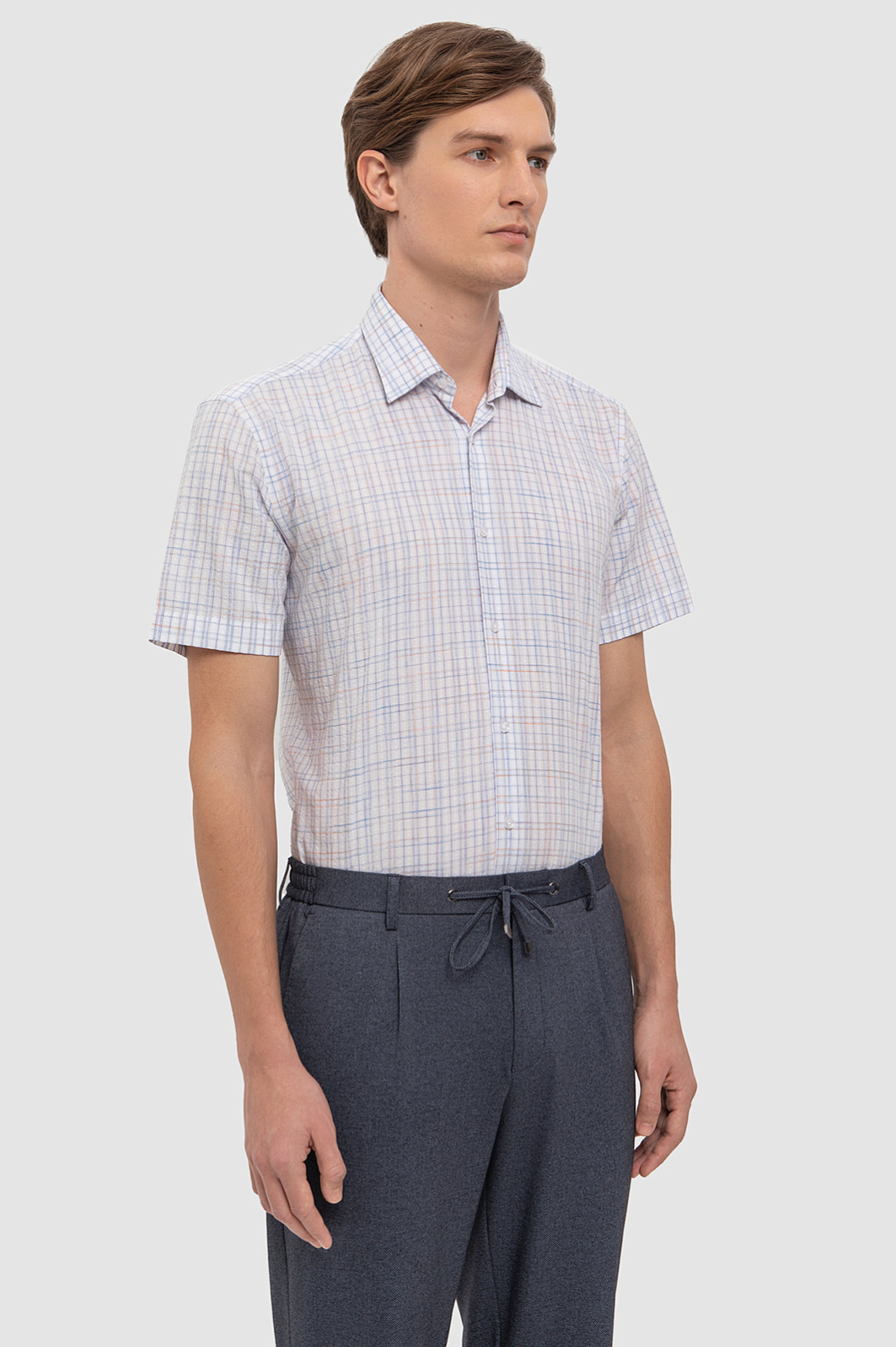 Сорочка с коротким рукавом из хлопка и тенсела, цвет голубой, цена 4 990 руб., код 267322 - купить в Москве в интернет-магазине KANZLER
